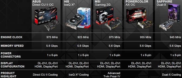 Видеокарты моделей R7 250 и R7 260X, не представленные на иллюстрации, предназначены для ценового диапазона ниже $140 (здесь и далее — цены на североамериканском рынке), R9 270X продается за $199, R9 280X — за $299, ну а рекомендованные цены флагманов линейки на рынке США составляют $399 и $549 соответственно. Неудивительно, что местечко для новой модели нашлось между $140 и $200 — в одном из самых массовых и выгодных ценовых диапазонов.