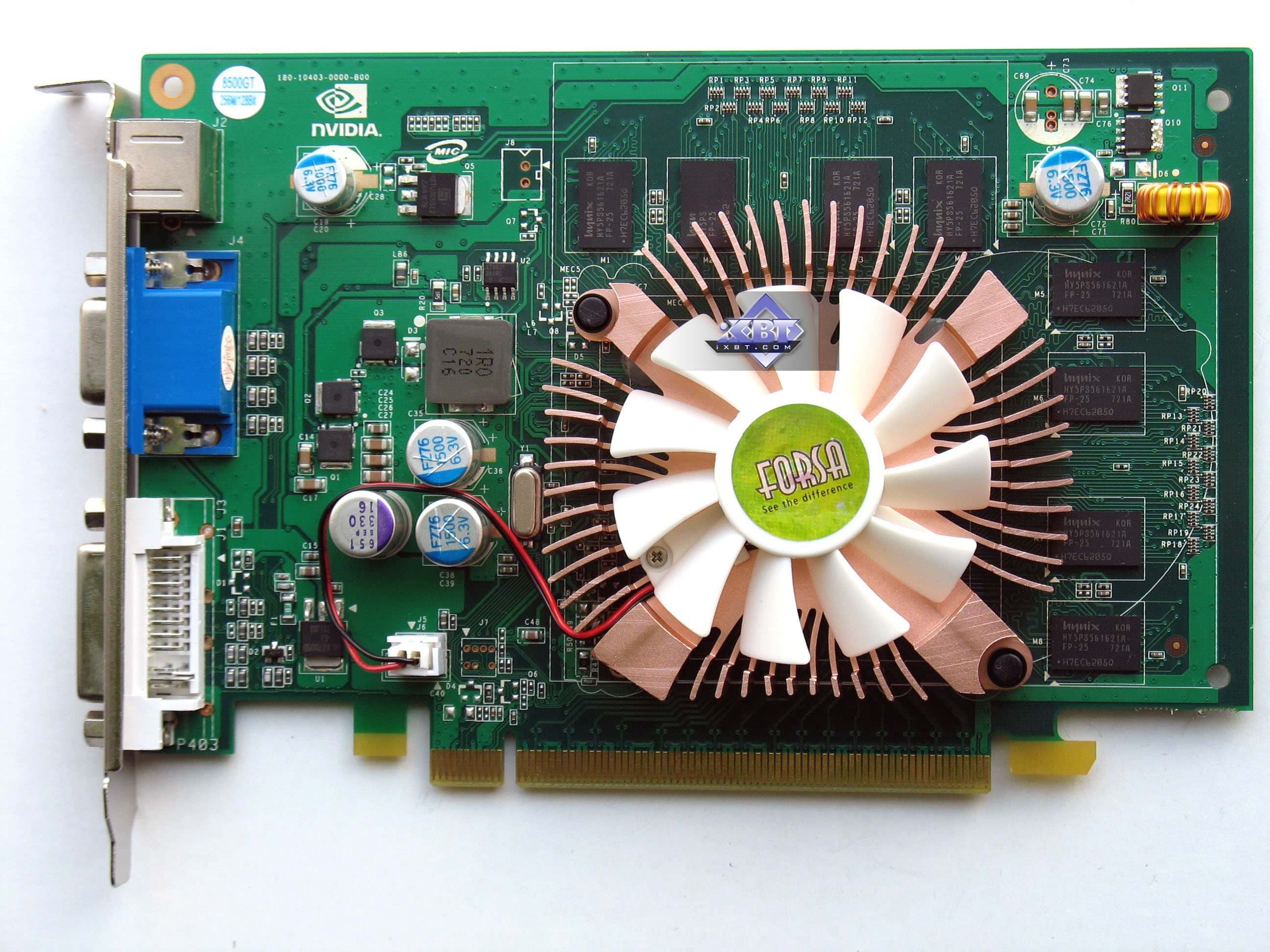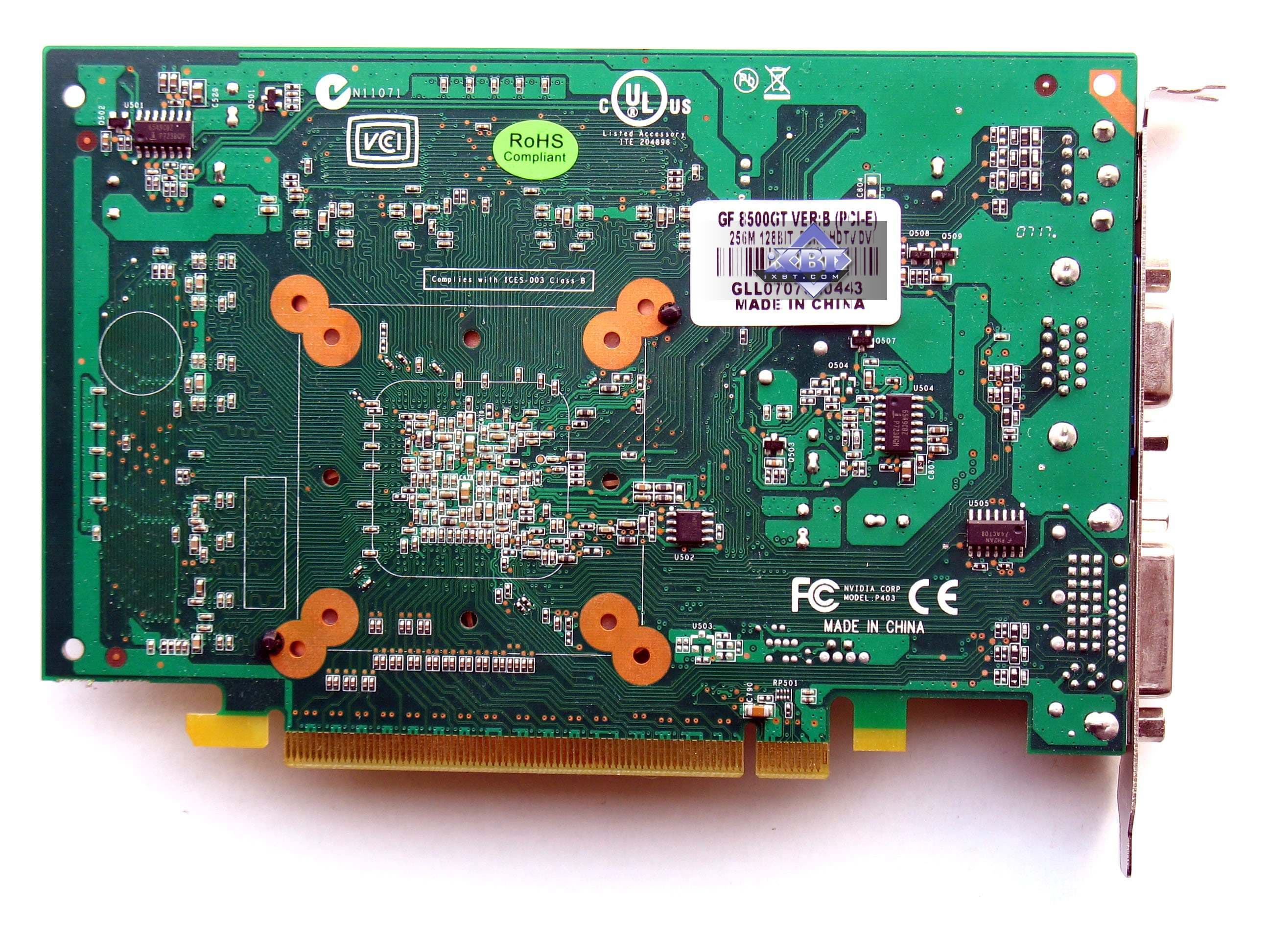 Комплектация. FORSA Geforce 8400 GS 256MB PCI-E и FORSA Geforce 8500 GT 256MB PCI-E прибыли в ОЕМ-поставке без коробок и комплектов.