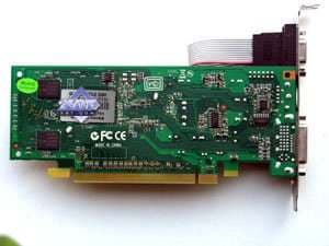 Что касается 8500 GT, то перед нами также референс-дизайн, а вот 8400GS выполнена особо. Понятно, что для столь слабой карты с 64 бит шиной не требуется большая PCB, и производитель решил карту выполнить в низкопрофильном исполнении, с возможностью снятия высокого брекета и установки карты в слим-корпуса разных популярных ныне мультимедийных систем. Однако, сразу хочу сказать, что качество графики в 2D мне не понравилось. Напомню, что карта имеет только Single-Link DVI, и тот обрублен, и выше 1280х1024 уже практически не тянет. А в 1280х1024 показывает высокую размазанность шрифтов, несмотря на DVI передачу и DVI-монитор.