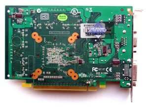 | Карта имеет 256 МБ памяти GDDR3 SDRAM, размещенной в четырех микросхемах на лицевой стороне PCB. Микросхемы памяти Qimonda (GDDR3). Время выборки у микросхем памяти 1,4 ns, что соответствует частоте работы 700 (1400) МГц. | ![]() |