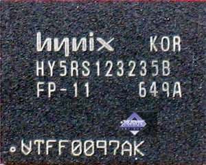 | Карта имеет 256 МБ памяти GDDR2 SDRAM, размещенной в четырех микросхемах на лицевой и оборотной стороне PCB. Микросхемы памяти Hynix (GDDR2). Время выборки у микросхем памяти 2,5 ns, что соответствует частоте работы 400 (800) МГц. | ![]() |
