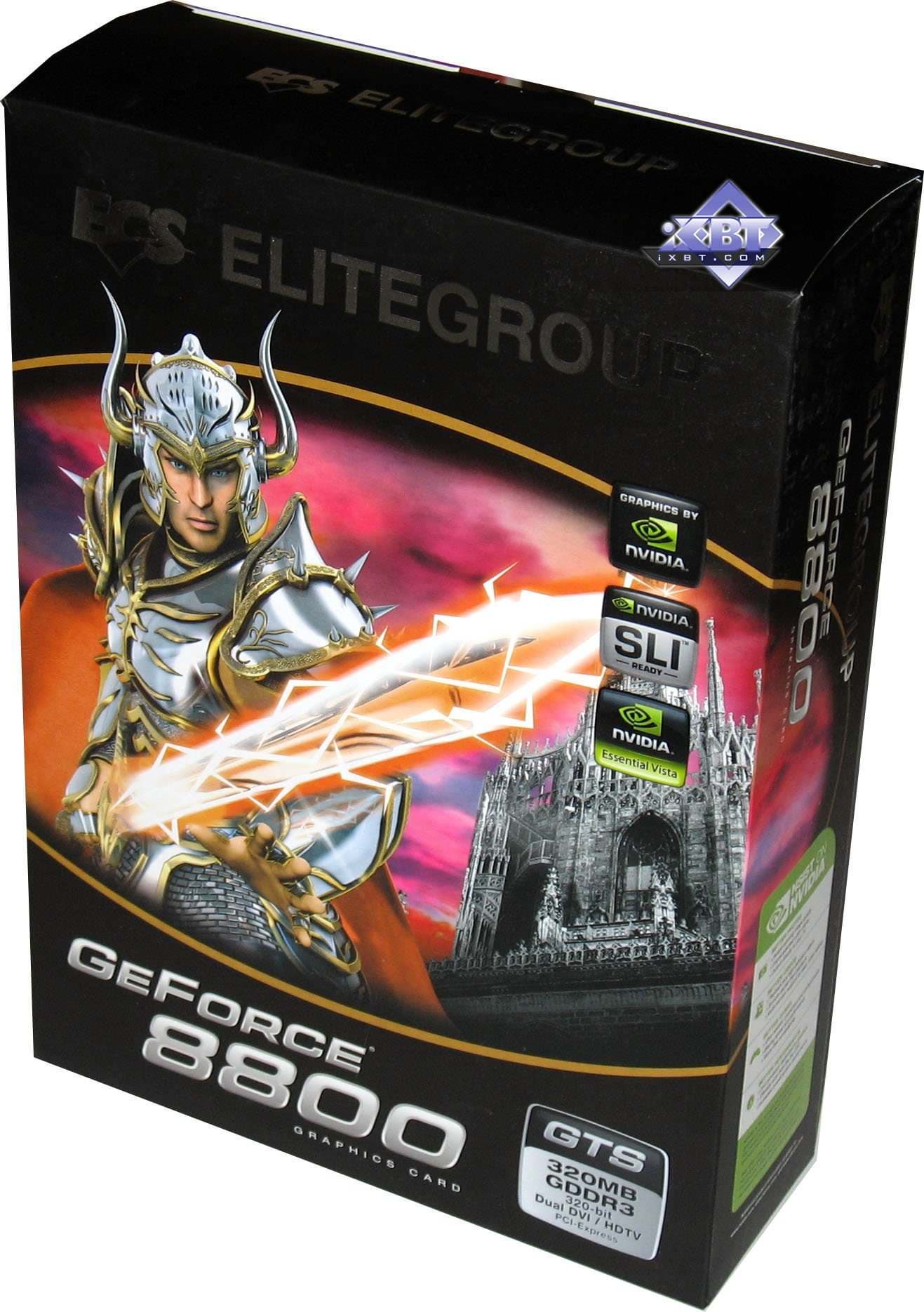 ECS Geforce 8800 GTS 320MB PCI-E — вывод точно такой же, поскольку точно также ECS не внесла ничего оригинального в эту карту, ограничившись простым минимальным комплектом. Повышенных частот тоже не наблюдается. Потому смотрим на цены и анализируем.