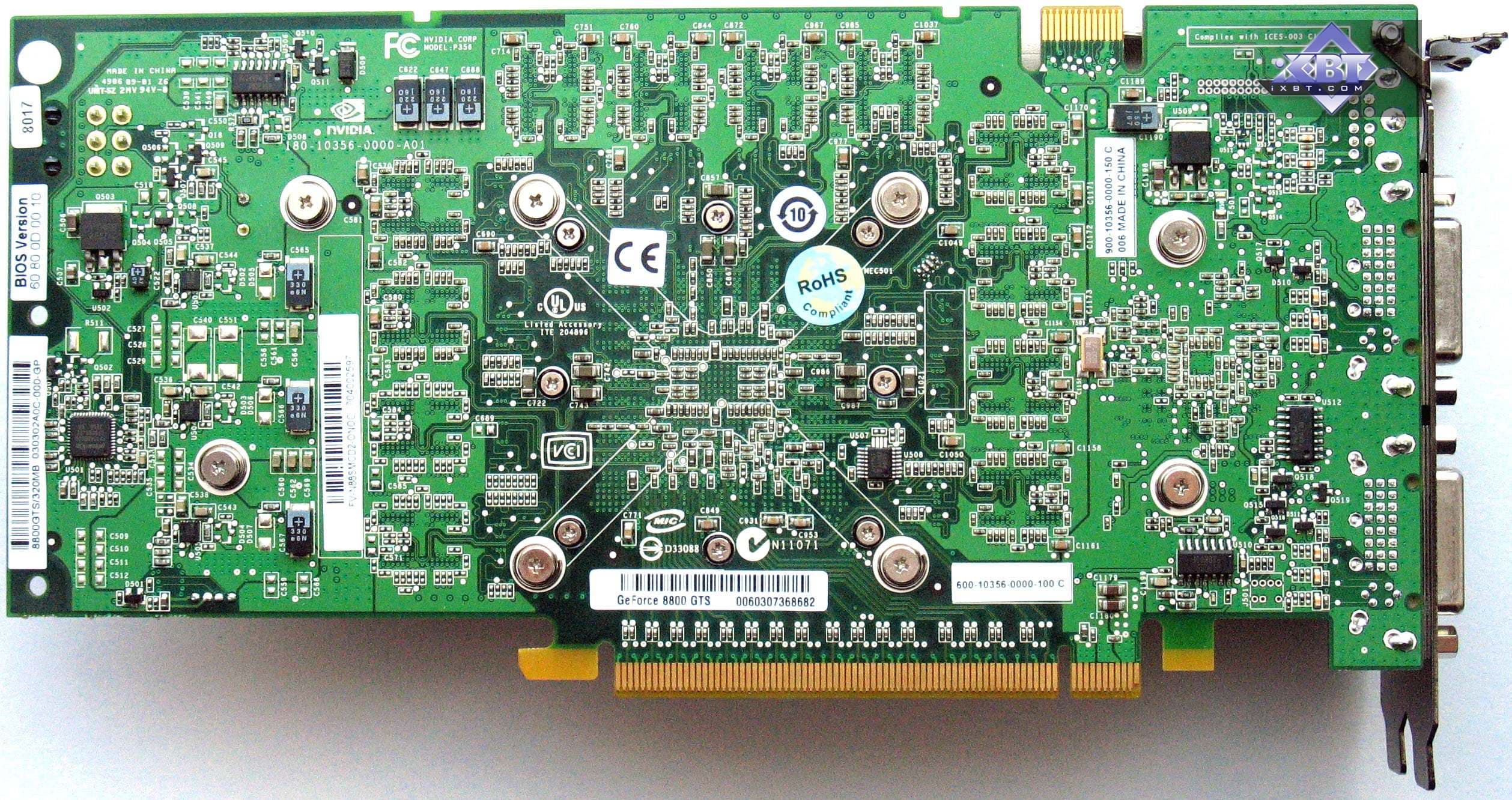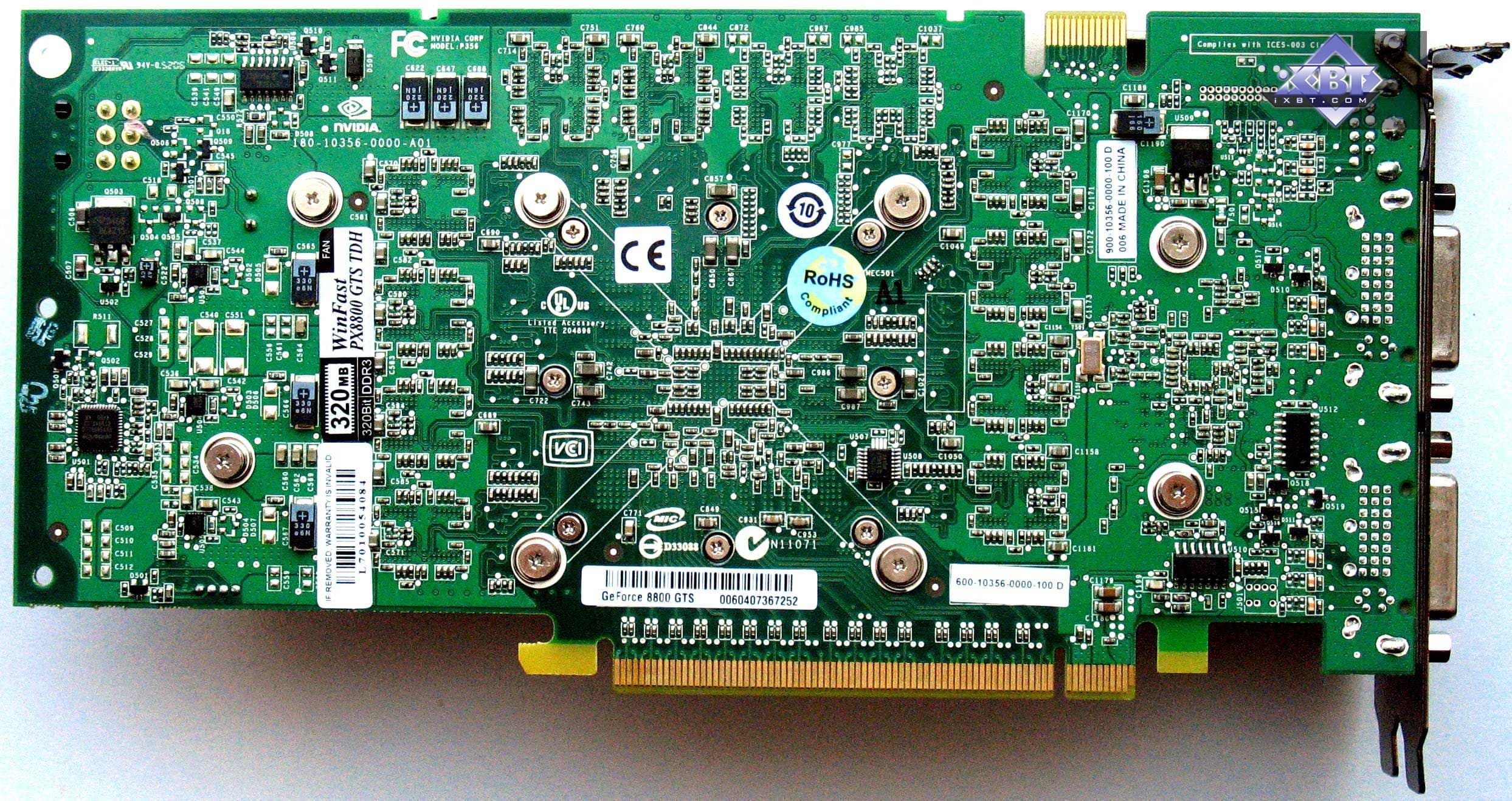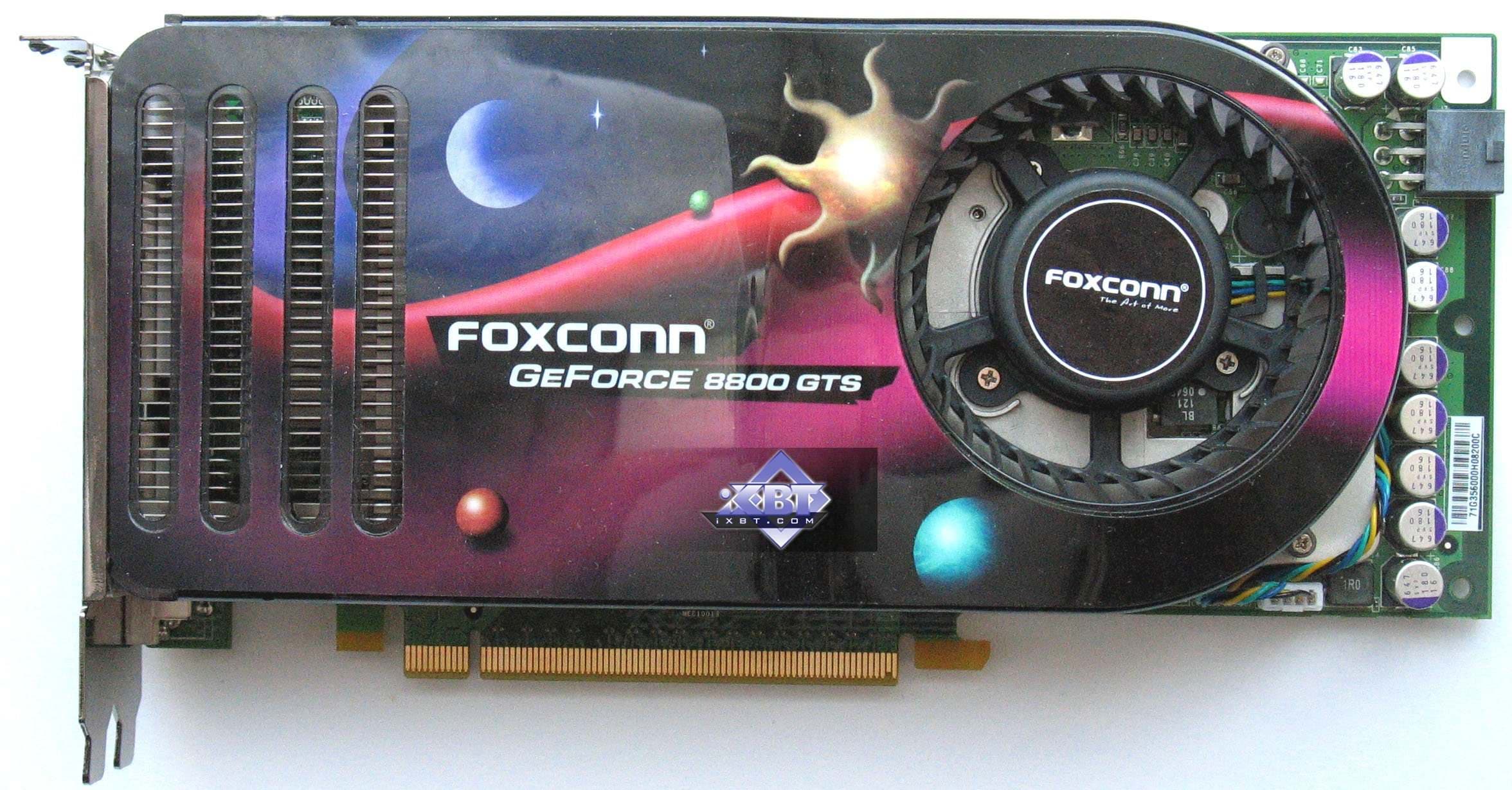 Foxconn Geforce 8800 GTS Overclocking Version 320MB PCI-E — самый быстрый на сегодня 8800 GTS 320MB, однако будьте внимательными при покупке, поскольку стикеры, обозначающие повышенный клокинг, есть только на коробках. На самих платах ничего не было найдено. Возможно это лишь на предоставленной карте для тестов, а на всех серийно выпускаемых в продажу стикеры будут и на самих платах.