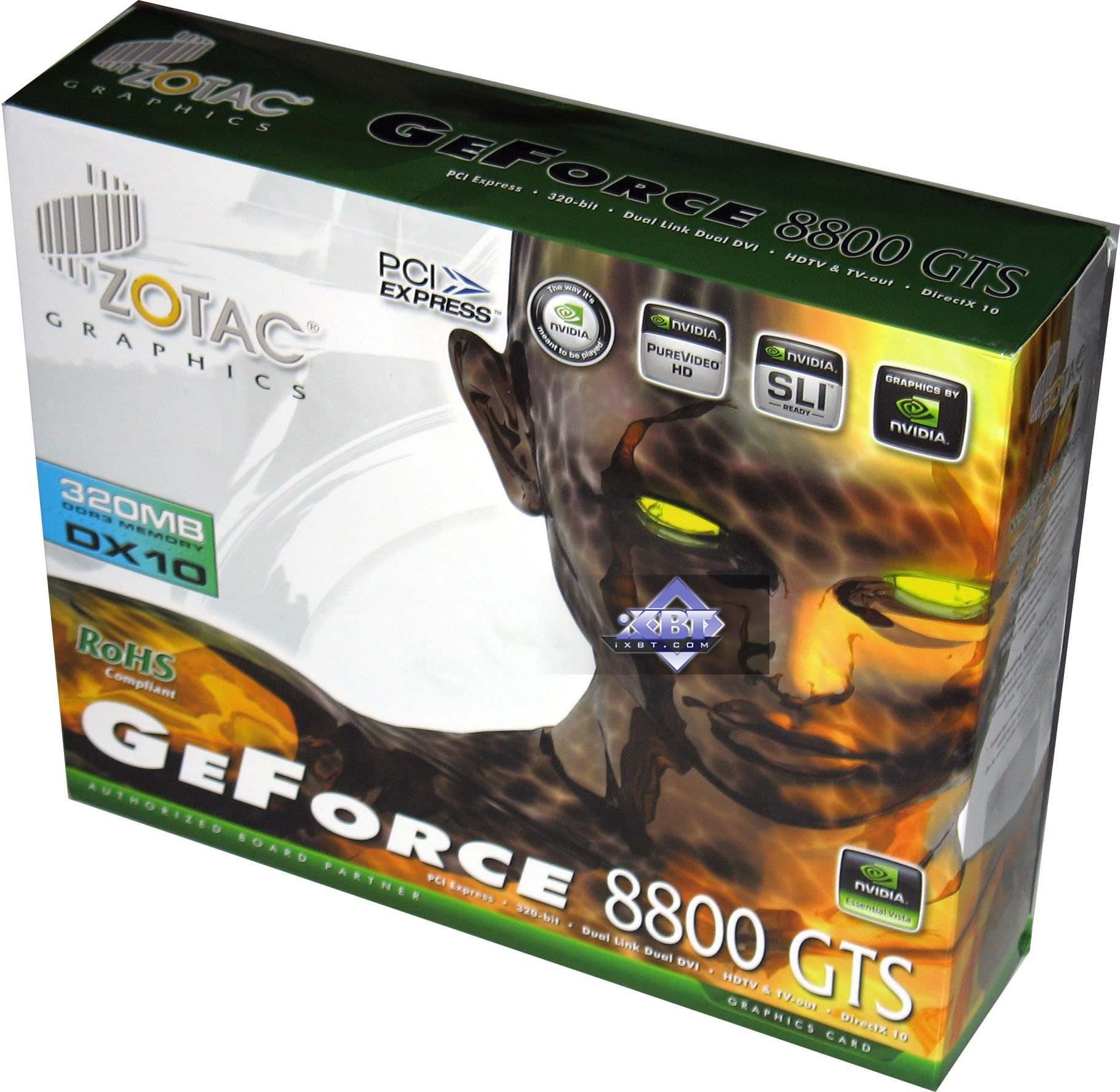 Zotac Geforce 8800 GTS 320MB PCI-E — стандартный ускоритель данного класса. По комплекту поставки и частотам ничем не выделяется, надо смотреть на цены. Если они будут не выше, чем у остальных аналогичных продуктов, то имеет смысл обратить внимание. Не забываем, что все 8800 GTS изготовлены на одном заводе по заказу Nvidia. И еще хочу напомнить, что компания Zotac — это дочерняя структура концерна PC Partner (оттуда же выходцем является и Sapphire Technology), призванная продавать продукты PC Partner на розничном рынке.