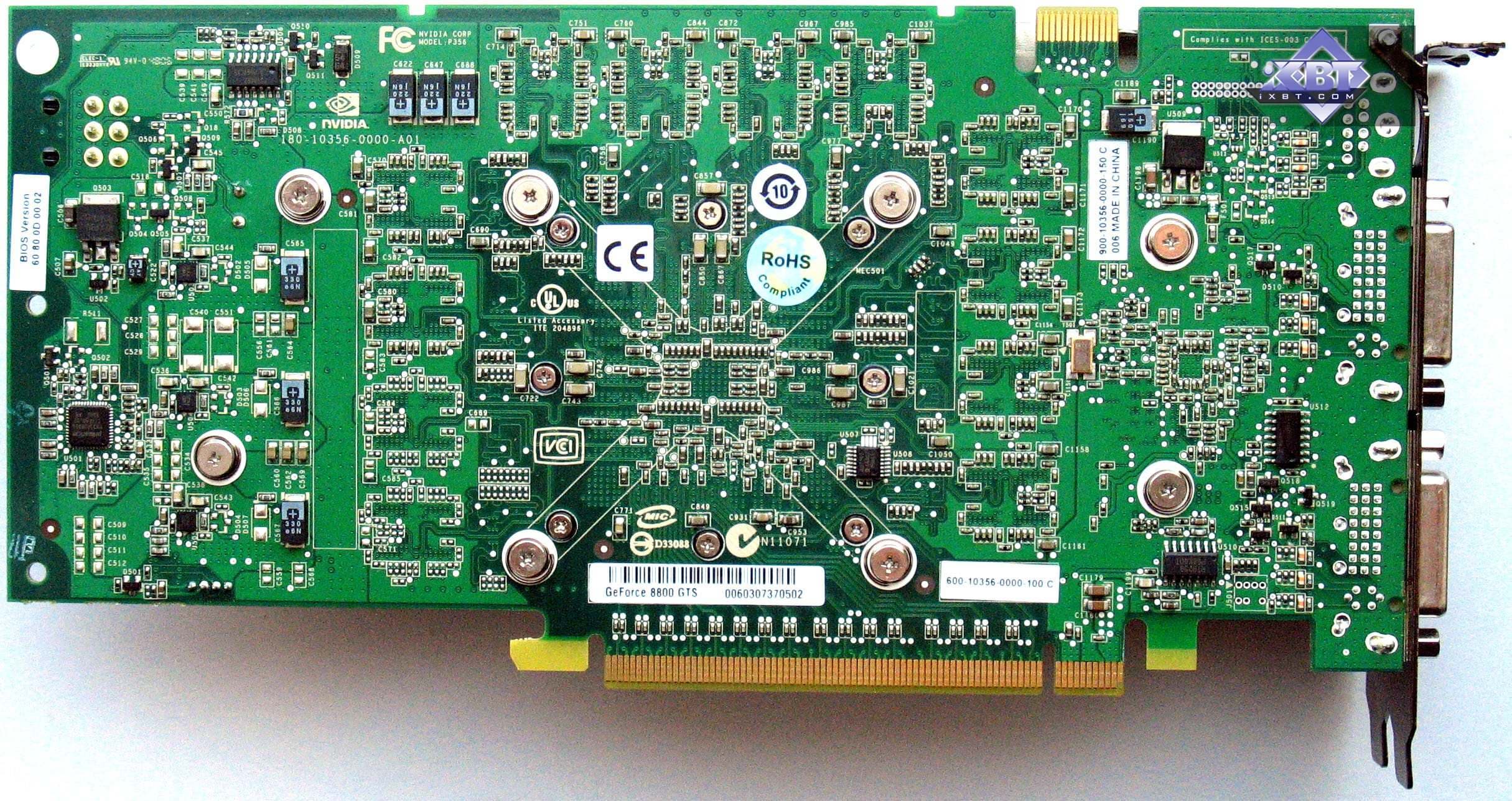 Теперь насчет цвета карт. Появление зеленого цвета PCB у 8800-й серии вызвало разные пересуды и фантазии. На форумах договорились даже до того, что все черные карты с браком, а вот зеленые уже нормальные. Ответственно вам говорим, что это неправда! Брак был только в первой партиив ноябре 2006 года, и давно уже их в природе не существует (карты заменены или возвращены по гарантии). Цвет PCB говорит лишь о том, что сейчас наибольший упор по заказу таких карт сделан в сторону Flextronics, который издавна производил референс-карты для Nvidia зеленого цвета. Кто выпускал (и еще выпускает) черные карты, упоминать не буду, опытные читатели сами догадаются.