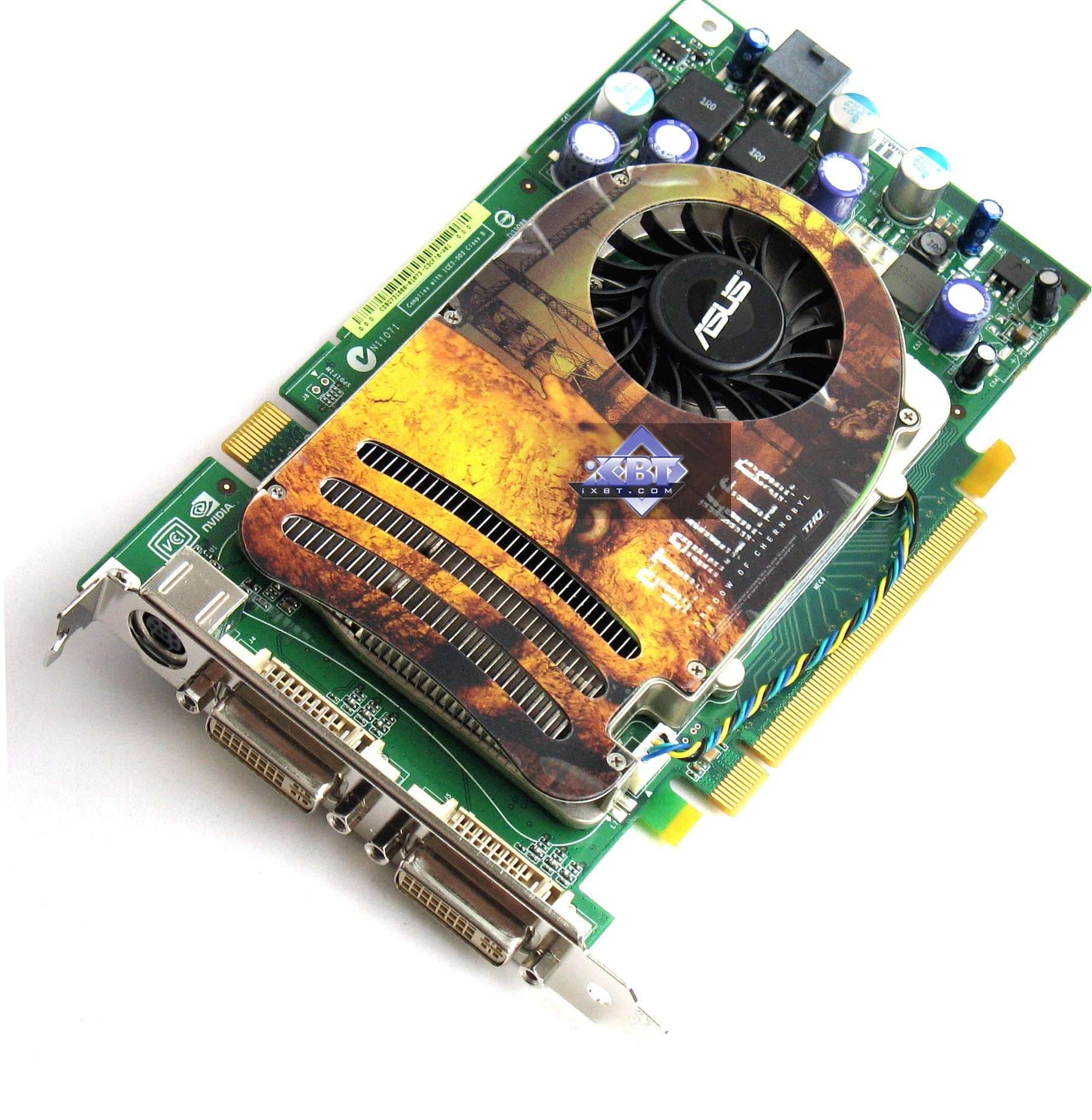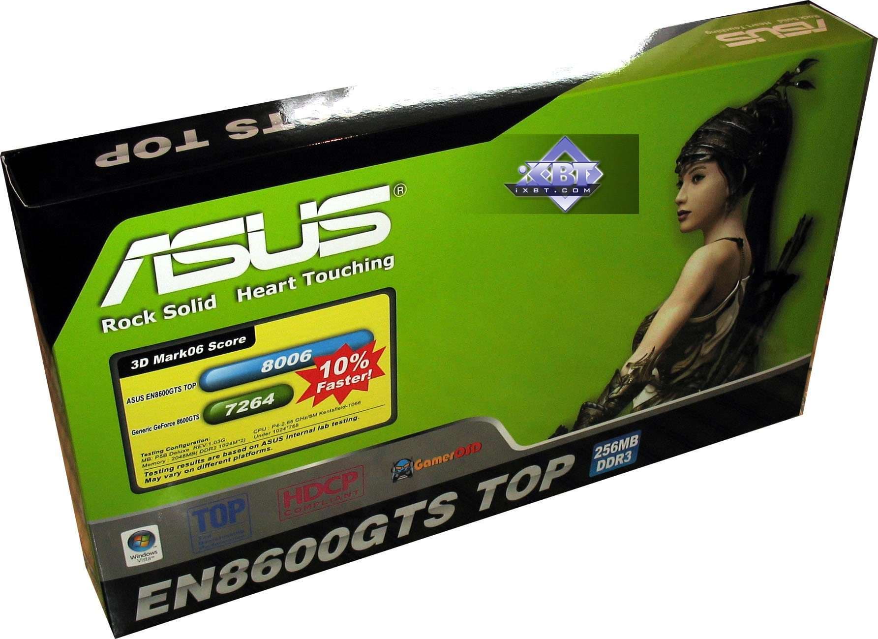 Asus EN8600GTS TOP 256MB PCI-E — самый быстрый на сегодня ускоритель среднего звена с поддержкой DX10, благодаря повышенным частотам работы. Омрачает его существование лишь наличие не так далеко выше по цене Geforce 8800 GTS 320MB, который явно выгоднее, сколько ни поднимай частоты у 8600GTS. Поэтому надо смотреть на цены, и если оные опустятся ниже 200 долларов США, то тогда есть смысл посмотреть на подобные карты. И еще один малопонятный момент: карта обклеена рекламой игры STALKER, но ее самой в комплекте почему-то нет.