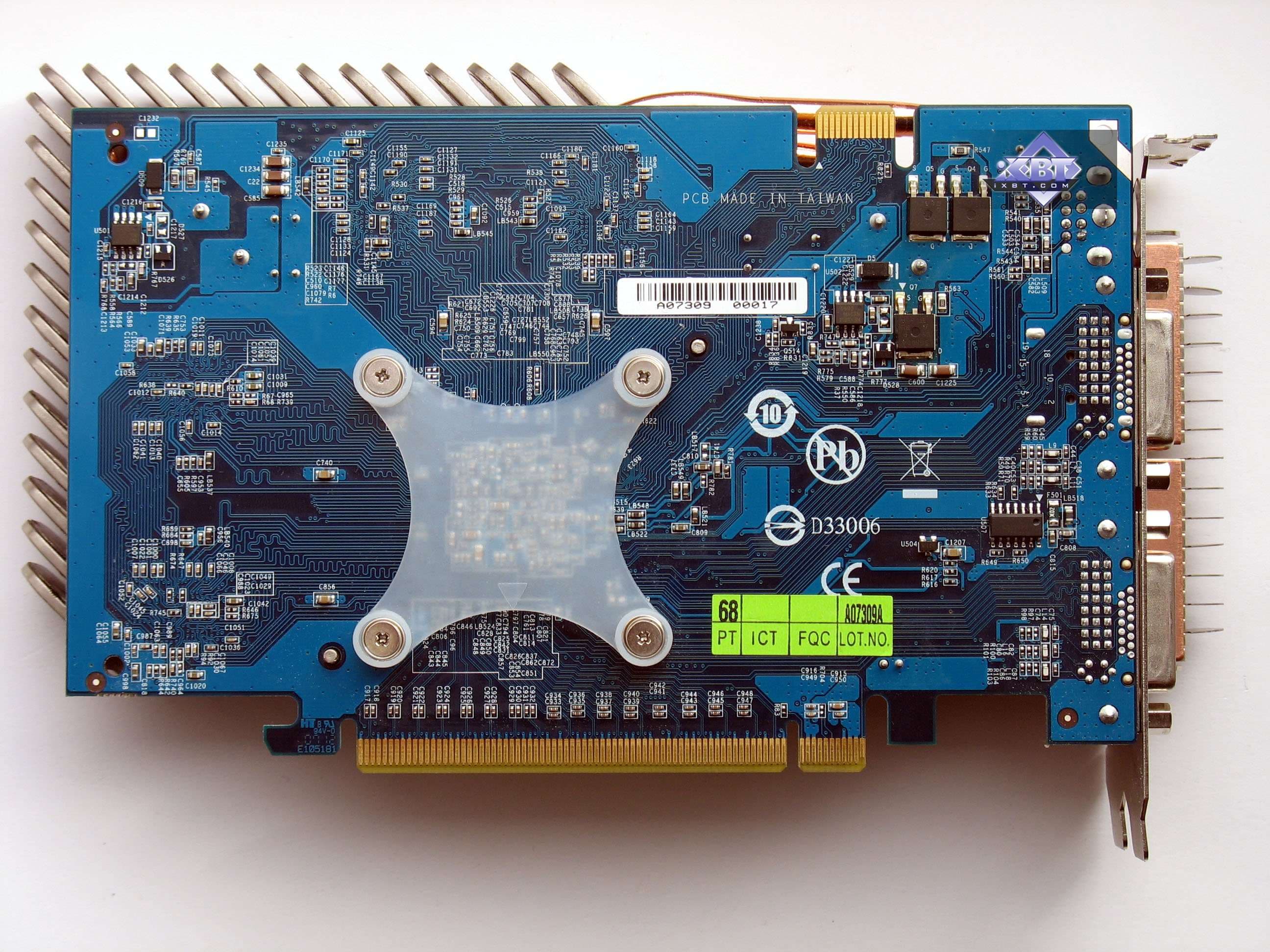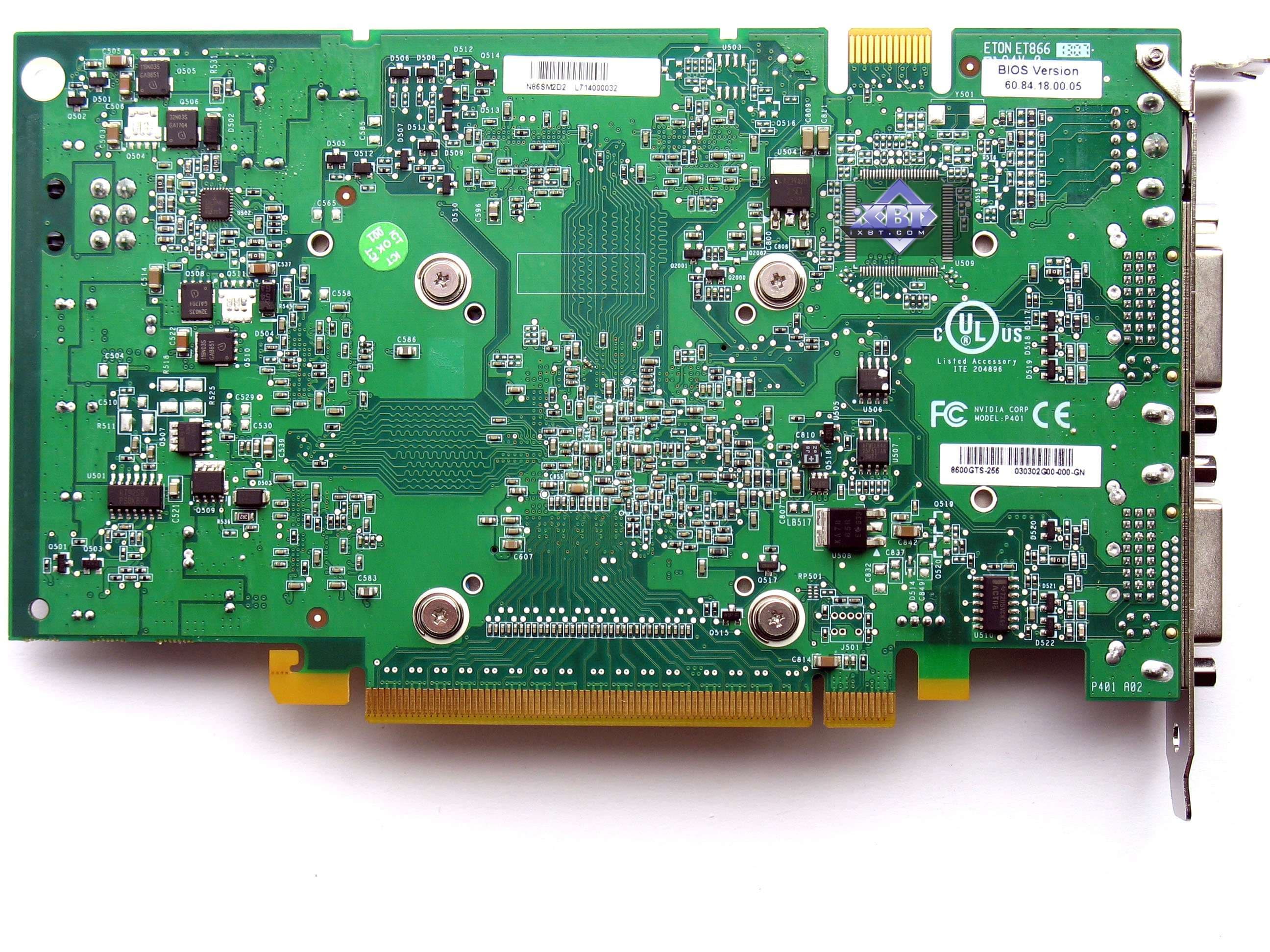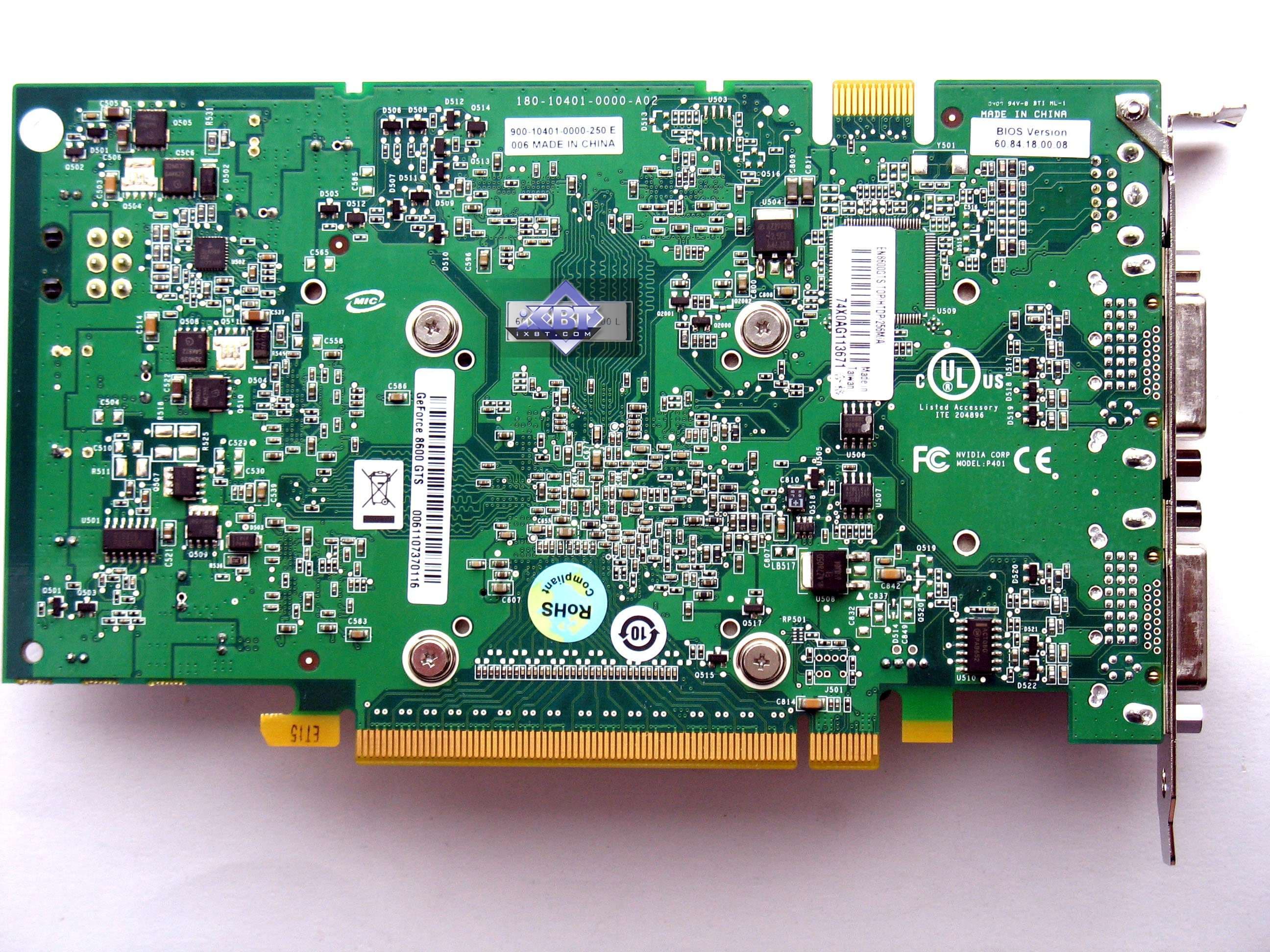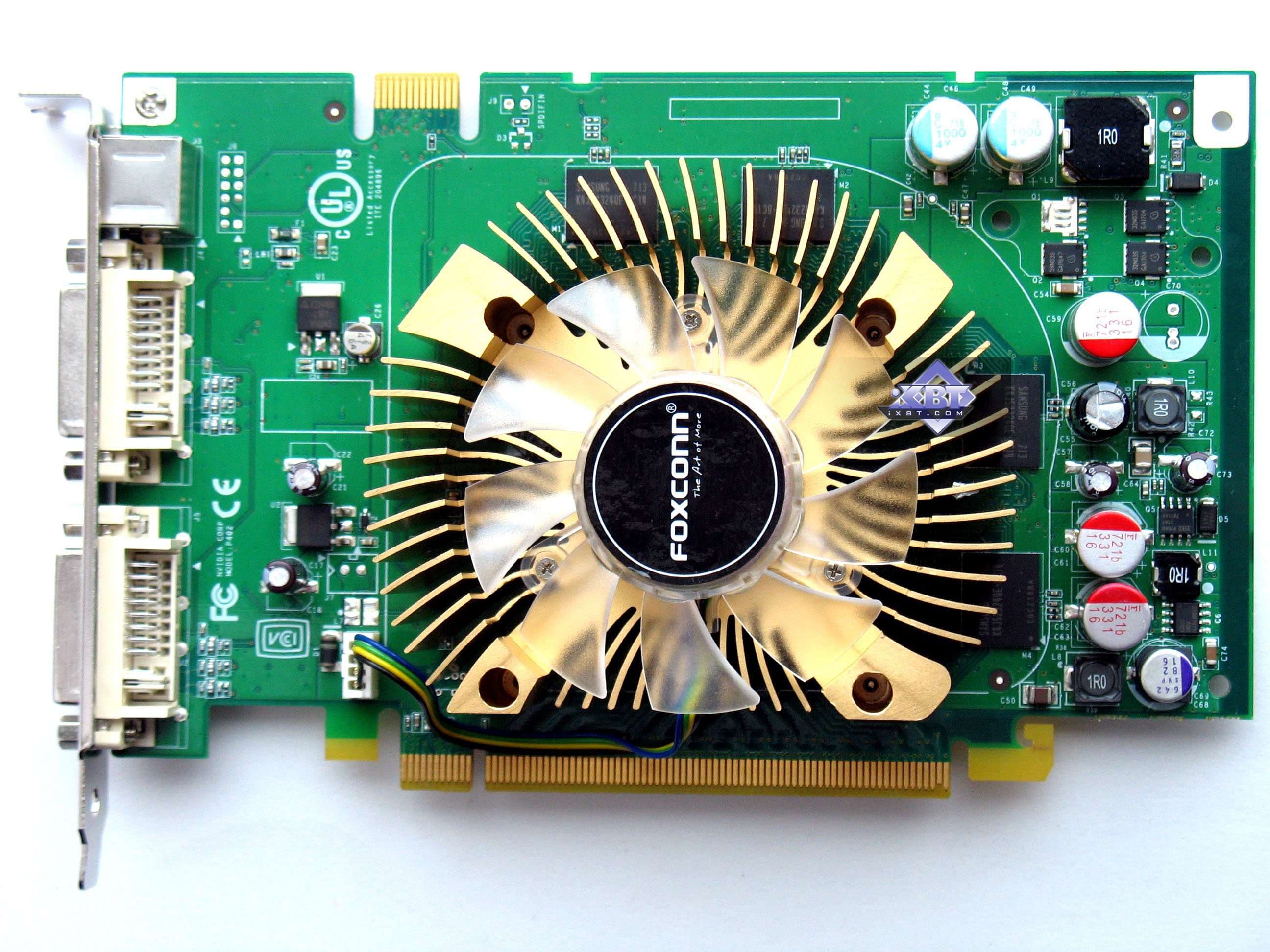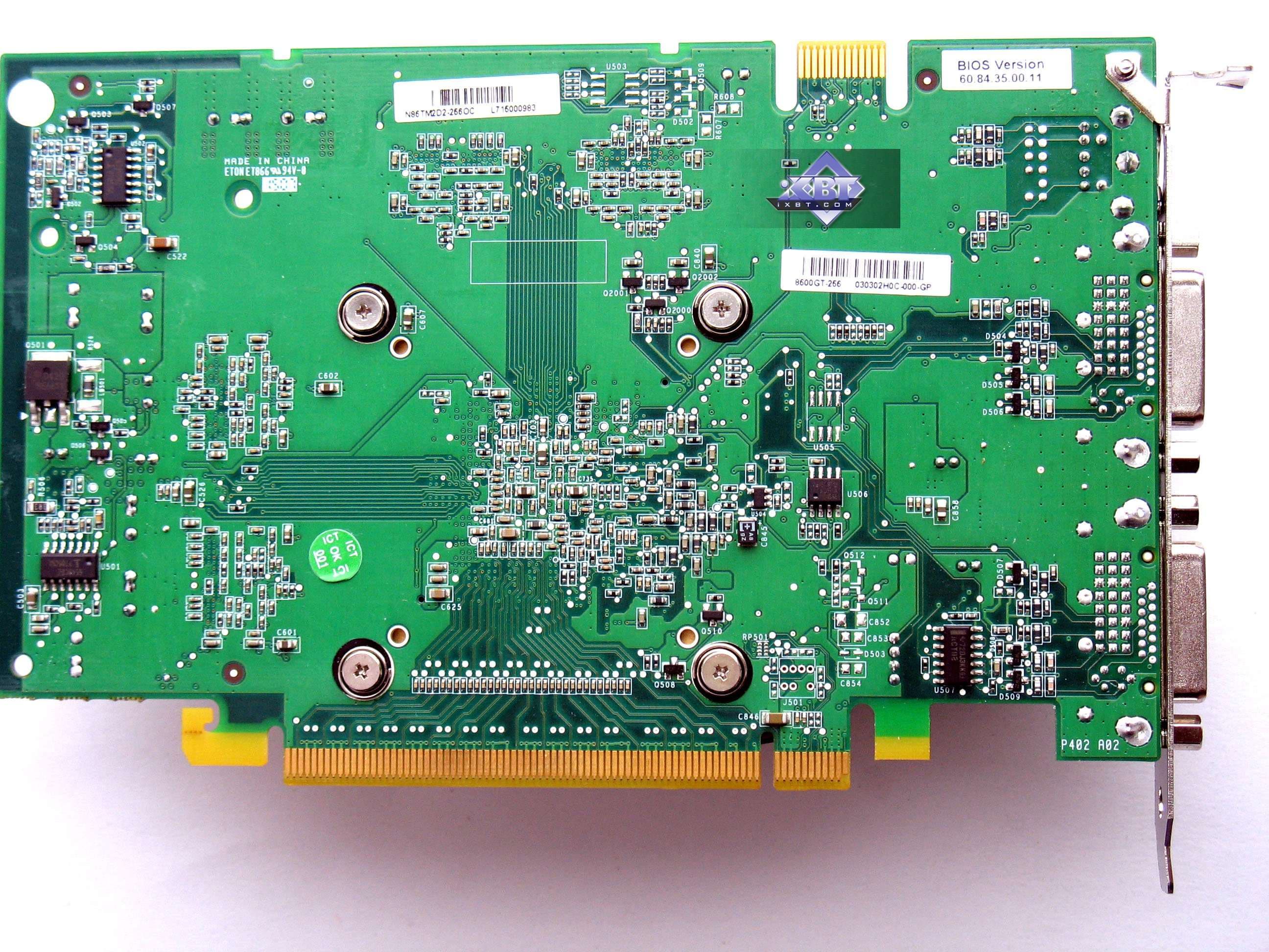 Анализ фотографий карт показывает нам, что все 8600GTS по сути — копии эталонного дизайна. А Asus и Foxconn представили непосредственно референс-карты, которые произведены на заводах Flextronics или иных компаний по заказу Nvidia, и партнеры калифорнийской компании никакого отношения к производству этих карт не имеют. Кроме карты от Gigabyte, которую следует отметить особо, поскольку она использует собственный дизайн от Gigabyte. Он предусматривает отсутствие разъема внешнего питания, то есть карта спроектирована так, что питания через слот PCI-E ей достаточно (напомним, что обеспечиваются потребности до 75Вт). Зачем на эталонном дизайне предусмотрено внешнее питание — не совсем понятно. Вероятно, перестраховка и желание помочь оверклокерам :). И карта от MSI — производства, однако точь-в-точь повторяет эталонный дизайн.
