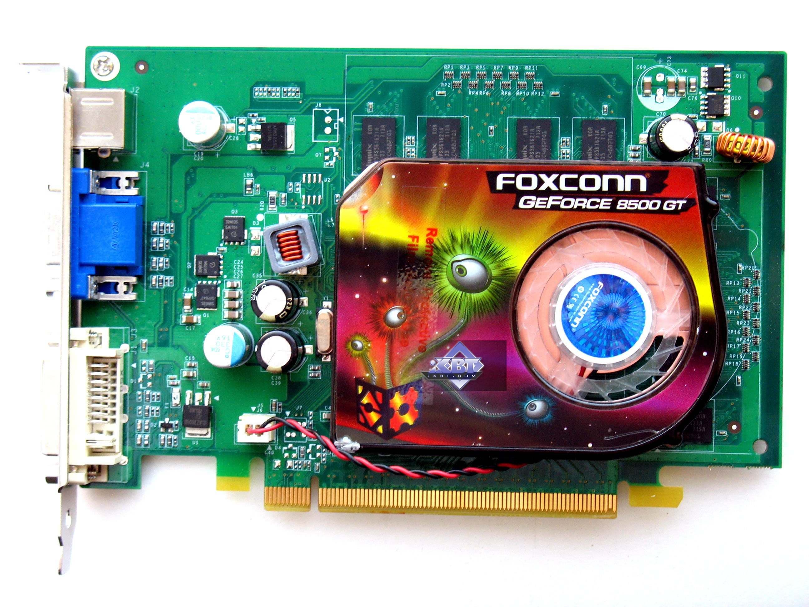 Foxconn Geforce 8500 GT 256MB PCI-E и MSI NX8500GT-TD256E 256MB PCI-E — самый медленный на сегодня DX10-ускоритель. Выше было сказано о таких картах. Приобретать такое изделие имеет смысл только, если у вас нет денег, но очень хочется пусть в низком разрешении увидеть DX10-приложения в реальном времени. Что касается данных карт, то продукты исполнены добротно, имеют хорошую систему охлаждения.