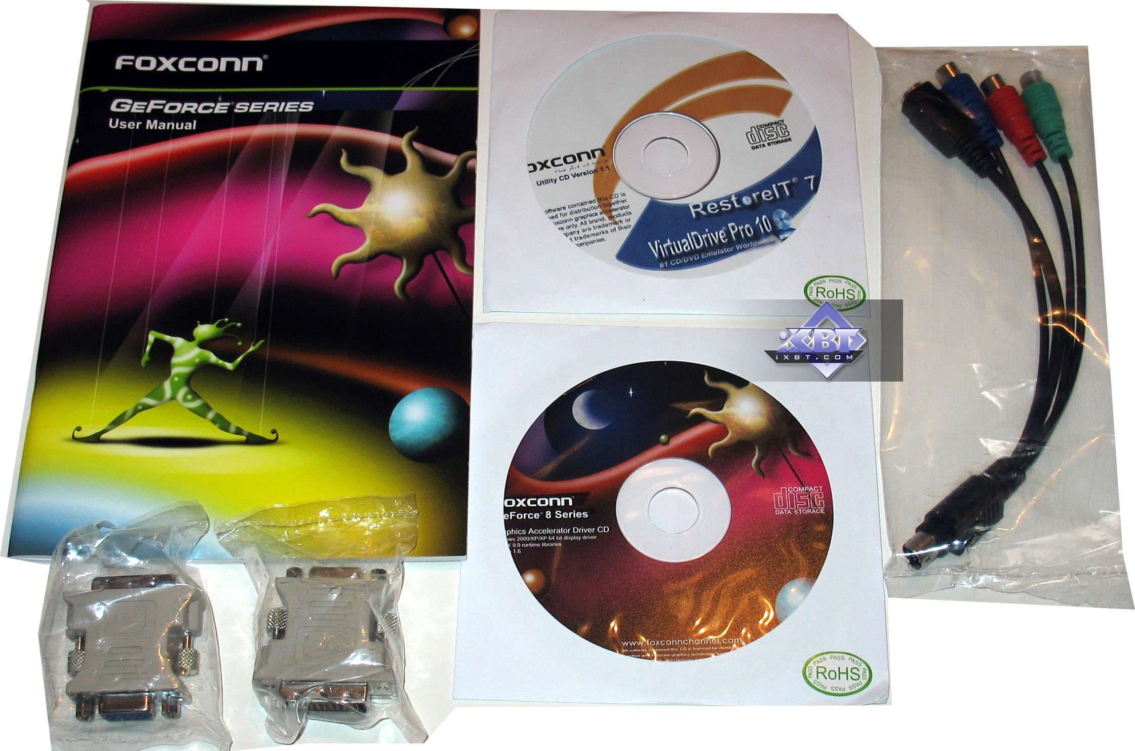 Напомним, что карты на базе 8600GTS от Asus и Foxconn требуют дополнительного питания, поэтому в хвосте каждой можно найти черный шестиштырьковый разъем. Если на вашем блоке питания нет такого хвоста с соответствующим разъемом, то в комплект с картами входит разветвитель-адаптер, позволяющий подключить любой хвост с разъемом Molex.