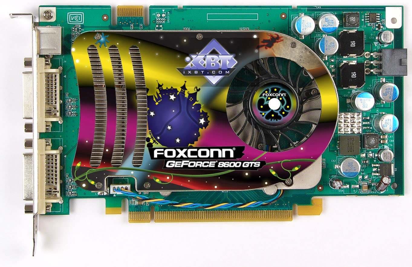 Foxconn Geforce 8600 GT Overclocked Edition 256MB PCI-E и MSI NX8600GT-TD256E-OC 256MB PCI-E — если так можно сказать, середнячок из середняков в целом. :) То есть позиции данной серии лежат посредине Middle-End сегмента. Это тот же 8600GTS, но имеющий пониженные частоты и не требующий внешнего питания. Данные карты выполнены не менее добротно, чем предыдущие продукты, обе оснащены довольно большими кулерами, которые смогут посодействовать и оверклокерам, если таковые найдутся для таких ускорителей.