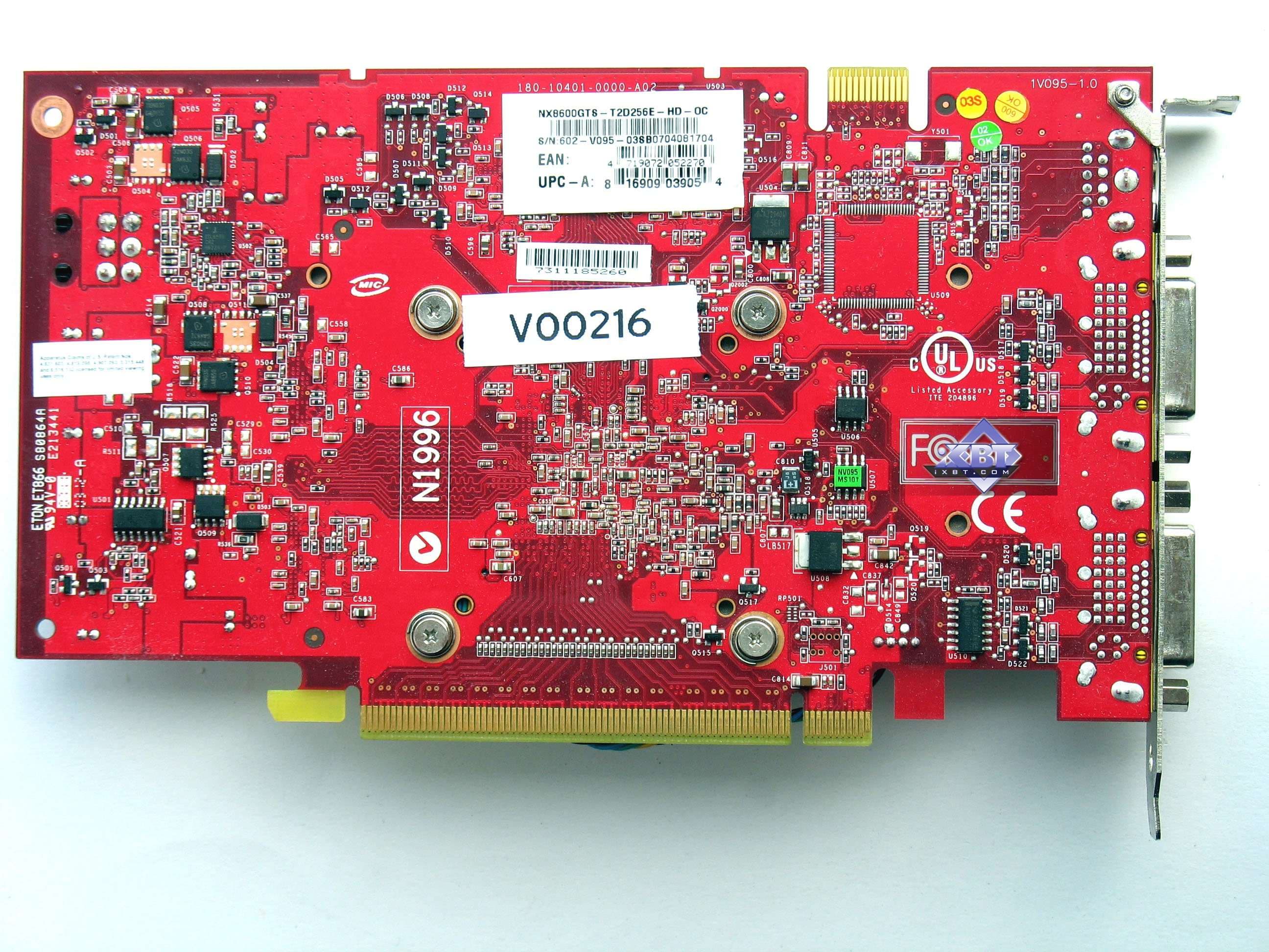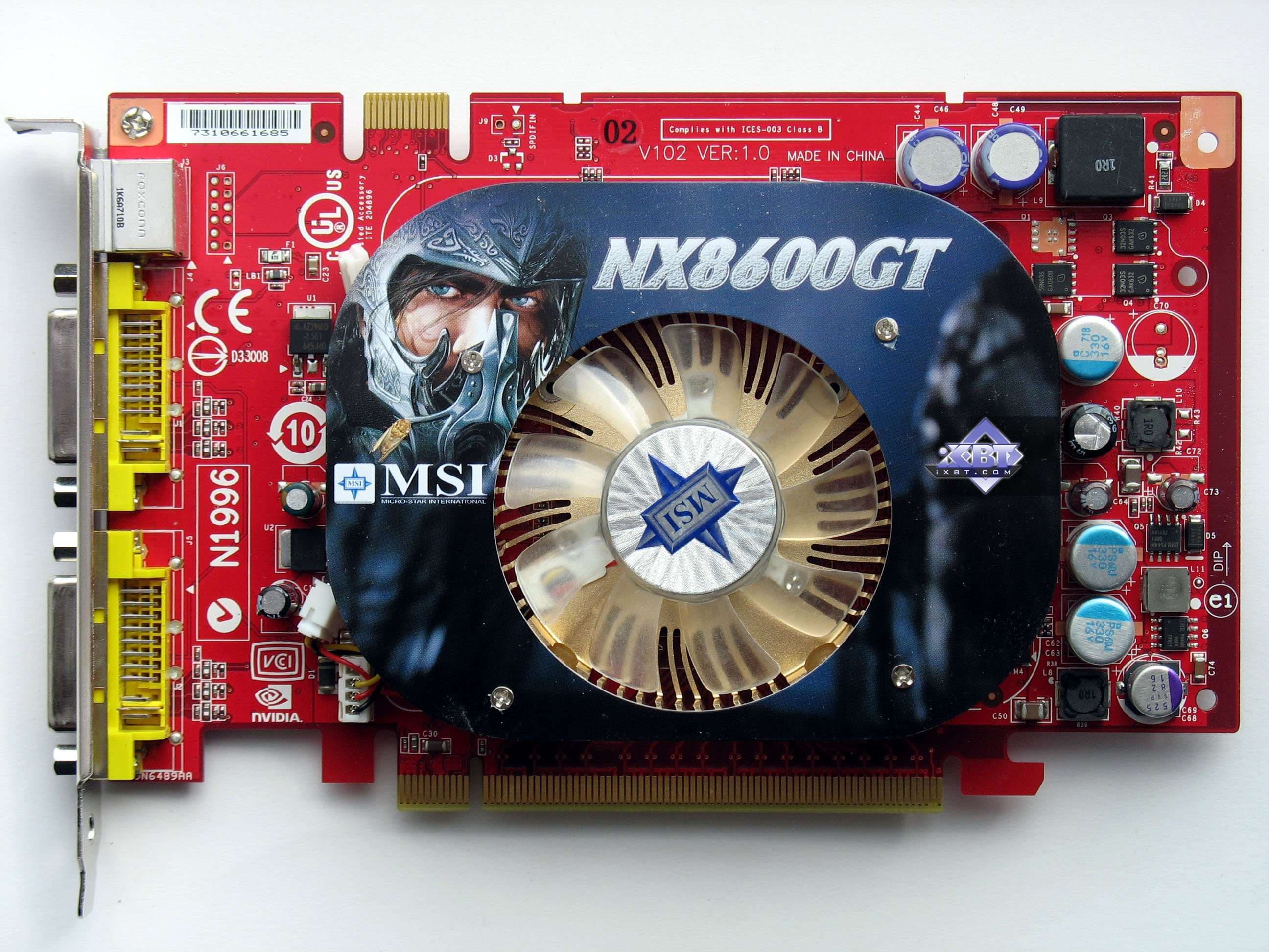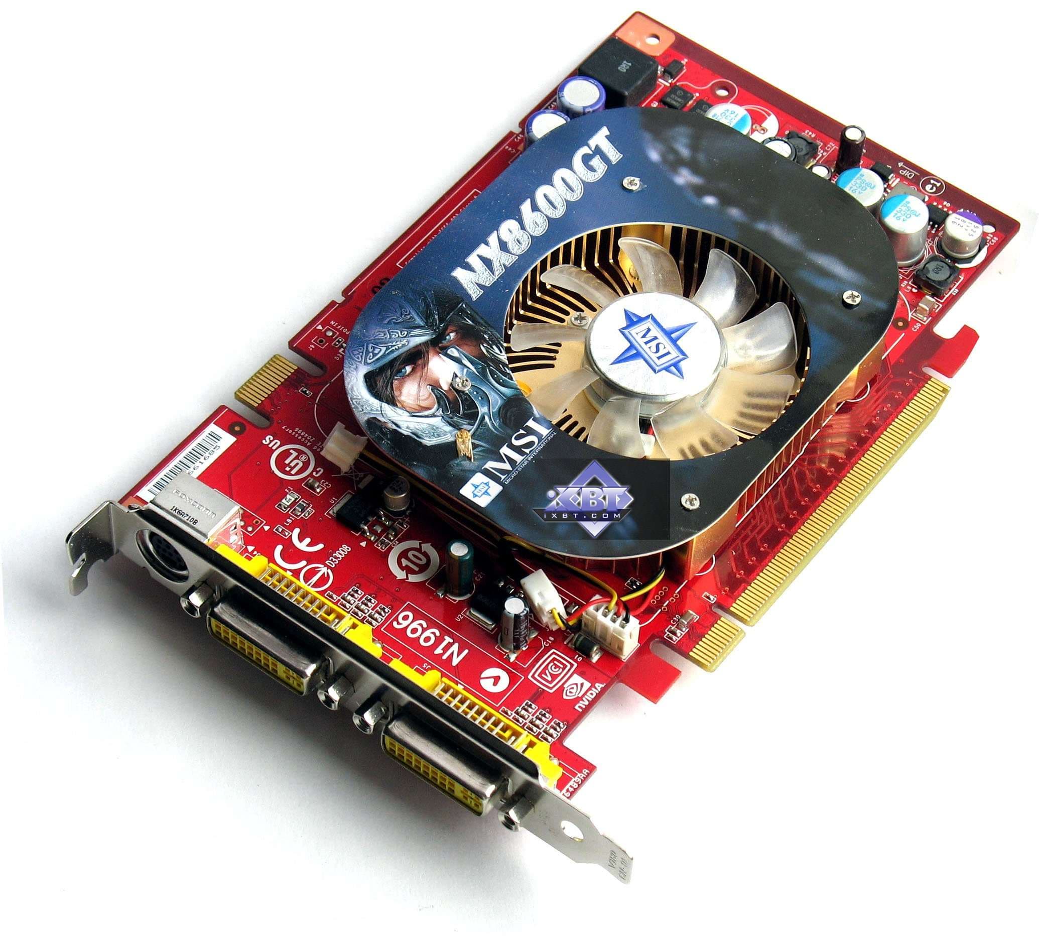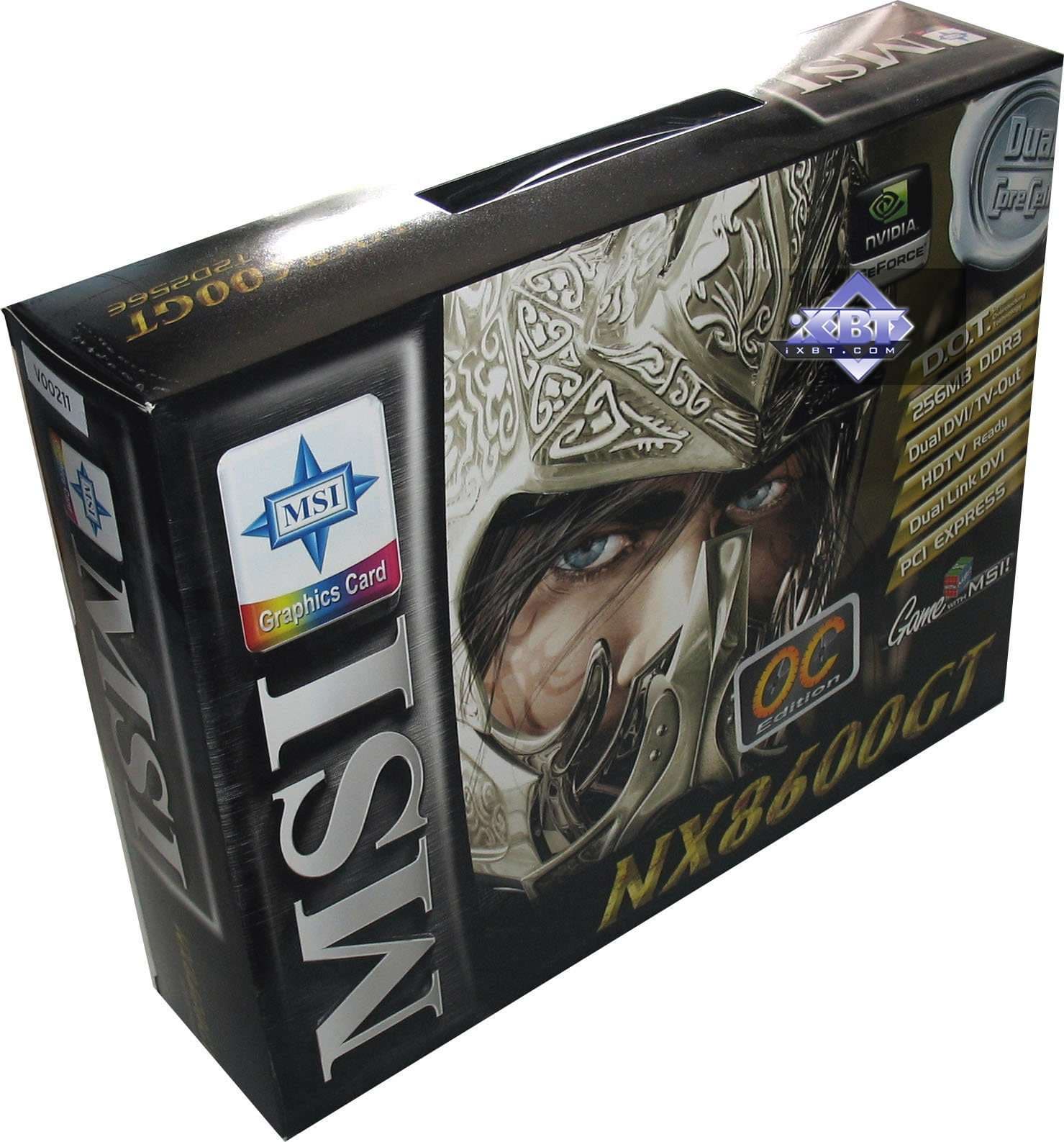 MSI NX8600GTS-TD256E-OC 256MB PCI-E — по сути, тоже референс-карта, но собственного производства MSI. Работает на повышенных частотах, но ниже, чем изделие от Asus. Данный экземпляр оснащен референс-системой охлаждения, когда как в продажу пойдут такие карты с собственным кулером от MSI, занимающим, подобно карте от Foxconn, два слота. Однако у нас не было возможности познакомиться с таким устройством. В целом продукт хороший, но, повторим, что для цены не выше 200 долларов, о чем мы говорили не раз.