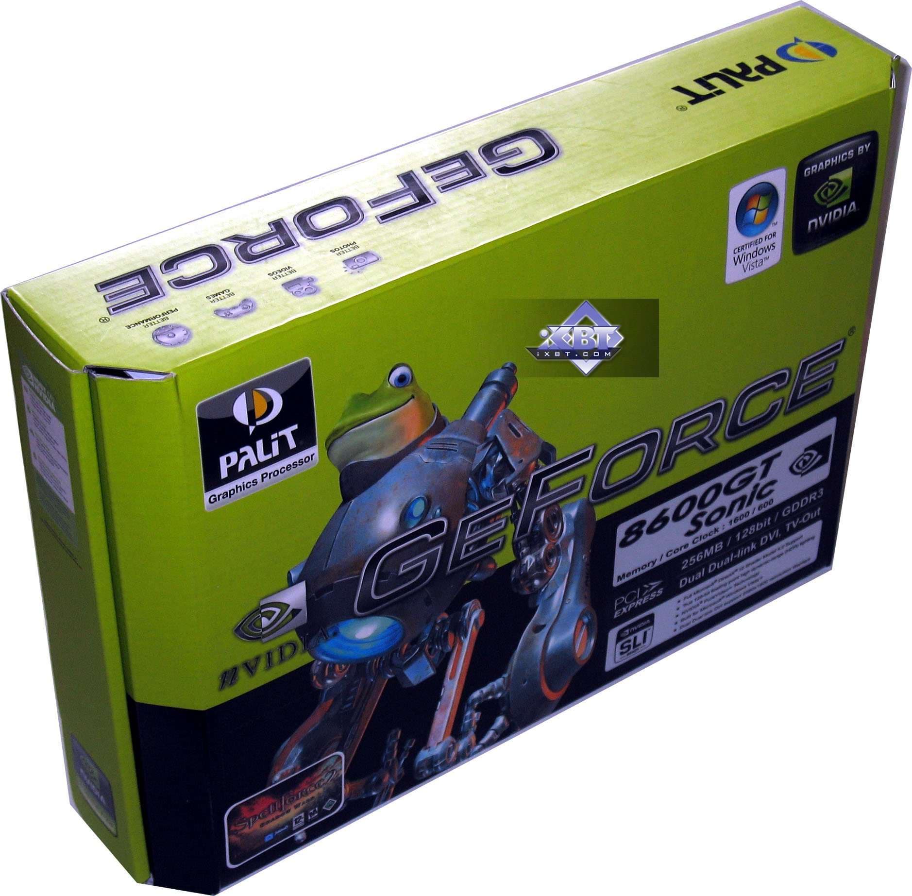 Palit Geforce 8600 GT Sonic 256MB PCI-E — аналогично сильно разогнанный вариант, но 8600GT. С учетом отличной системы охлаждения, данный продукт становится очень привлекательным, имея намного меньшую цену относительно 8600GTS, отставая от последнего по производительности не так сильно.