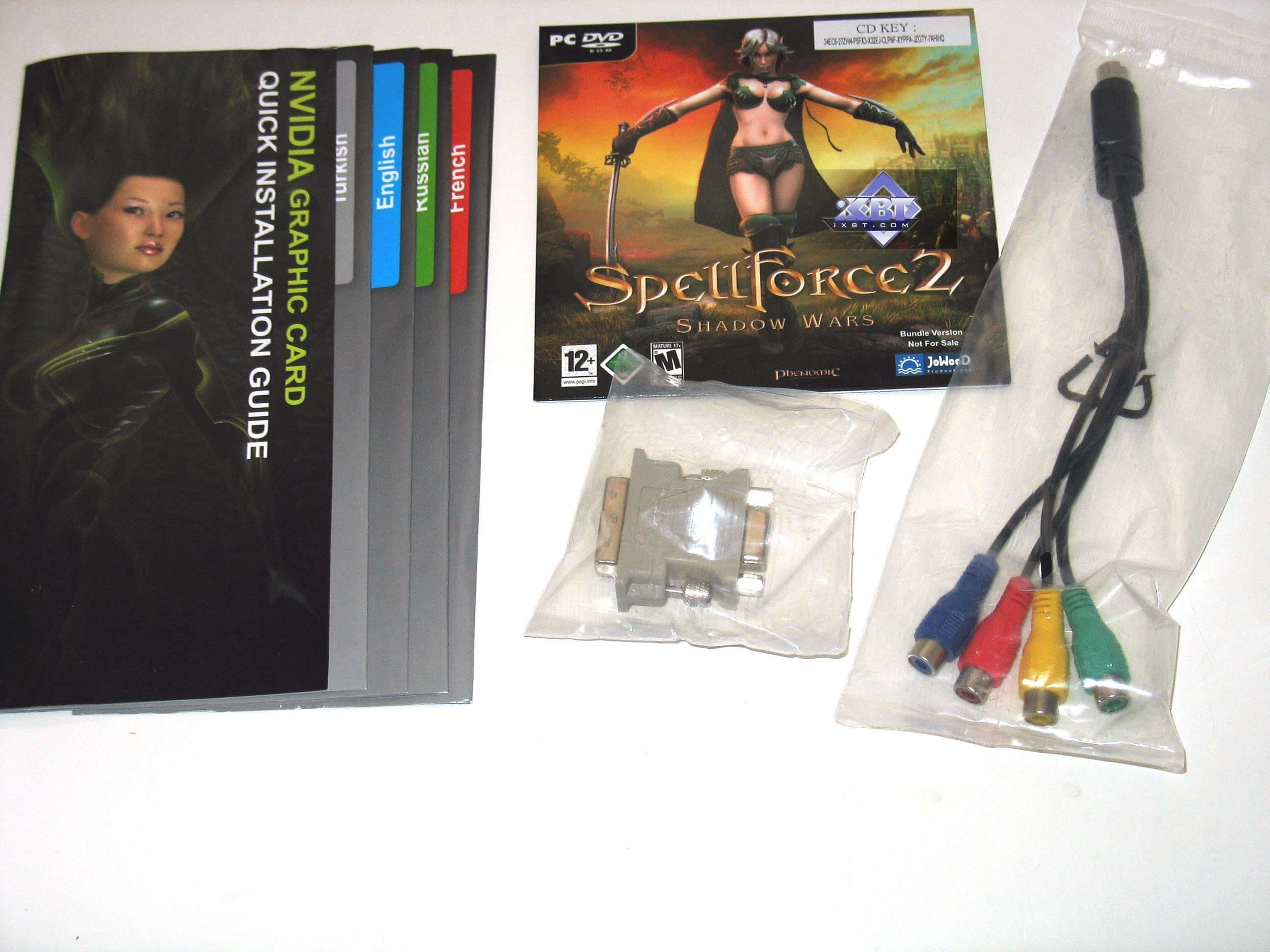 У карт имеются гнезда TV-выхода, которые уникальны по разъему, и для вывода изображения на ТВ как через S-Video, так и по RCA, требуются специальные адаптеры-переходники, поставляемые вместе с картами. Более подробно о ТВ-выходе можно почитать здесь.