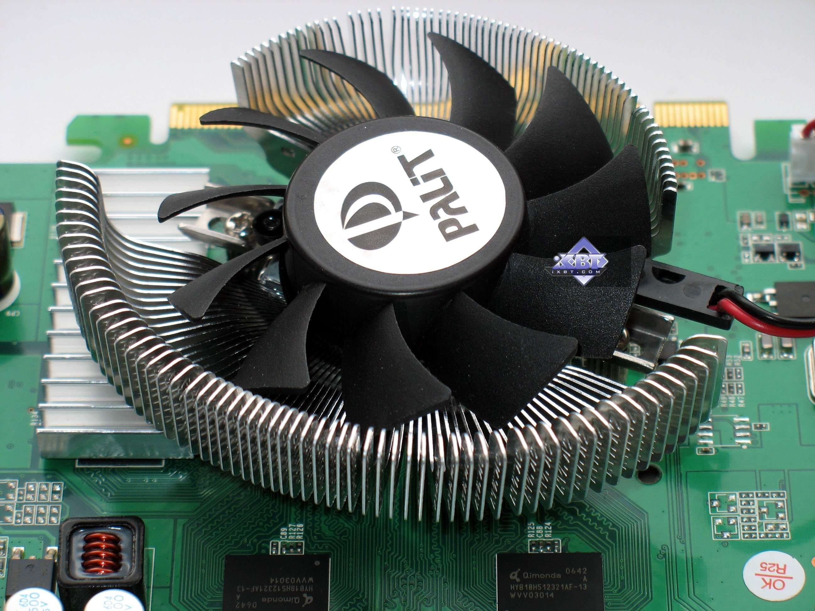 | Каждая карта имеет 256 МБ памяти GDDR2 SDRAM, размещенной в восьми микросхемах на лицевой стороне PCB. Микросхемы памяти Hynix (GDDR2). Время выборки у микросхем памяти 2,5 ns, что соответствует частоте работы 400 (800) МГц. | ![]() |