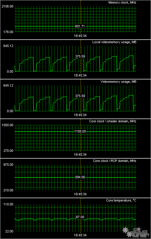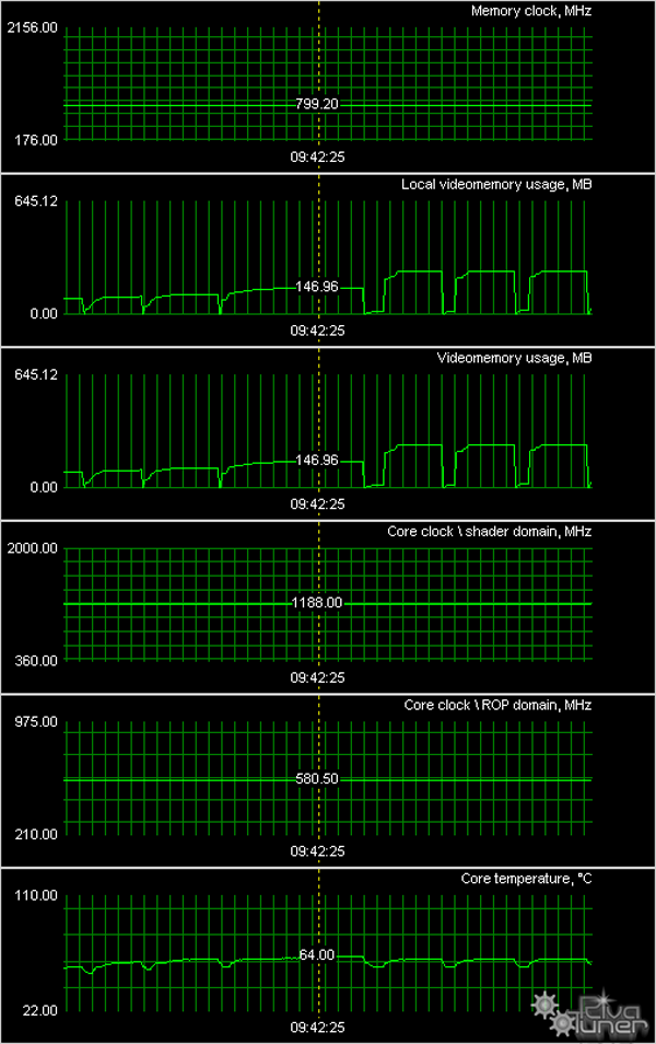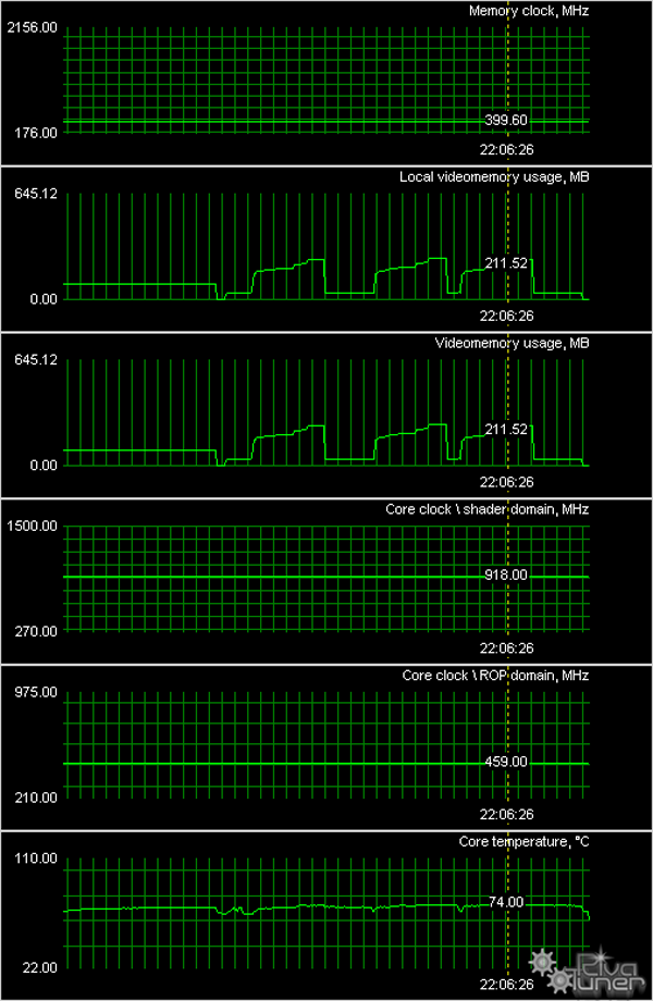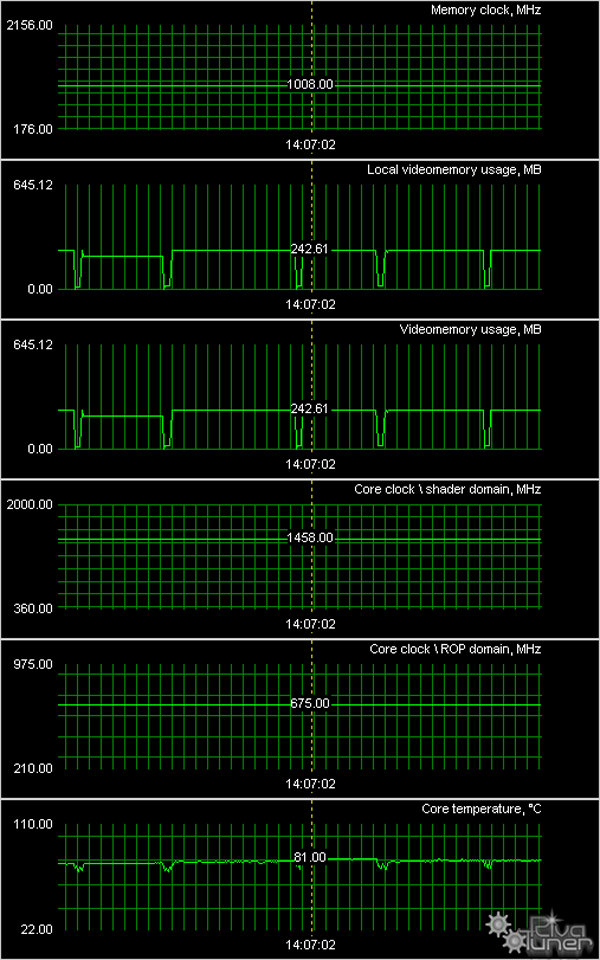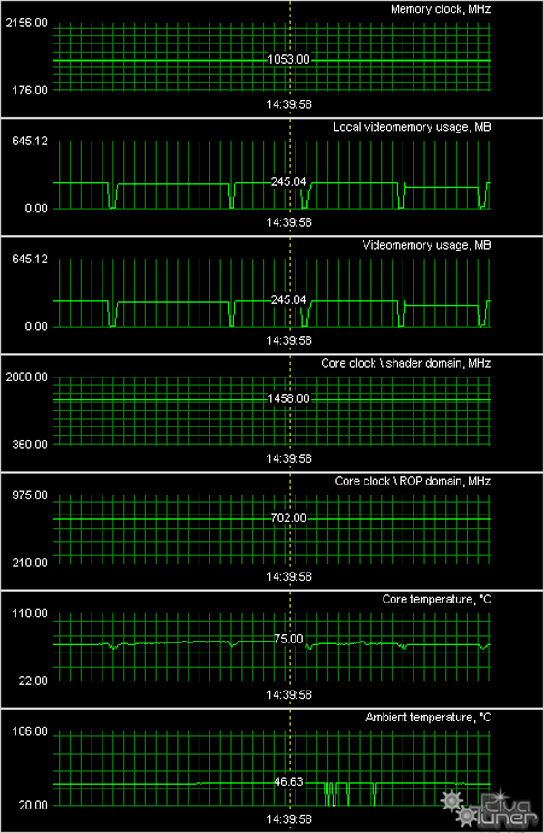 Мы провели исследование температурного режима с помощью утилиты RivaTuner (автор А.Николайчук AKA Unwinder) и получили следующие результаты: