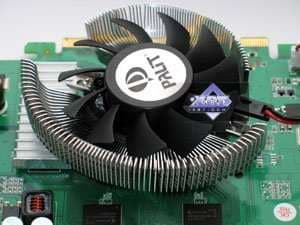 Теперь о системах охлаждения. Мы не станем рассказывать о кулерах на 8600GTS эталонного дизайна, поскольку мы ранее изучали этот вопрос. Устройство охлаждения у Foxconn Geforce 8500 GT 256MB PCI-E тоже стандартно и представляет собой закрытый прямоугольный радиатор со смещенным относительно центра вентилятором (такого типа, как и у Geforce4 Ti — серий, мы не раз говорили об этом). Foxconn Geforce 8600 GT Overclocked Edition 256MB PCI-E использует кулер обычного дизайна с круглым радиатором (украшенным многочисленными ребрами) и вентилятором в центре. Только радиатор имеет очень большую толщину, поэтому видеокарта получилась, по сути, двухслотовой.