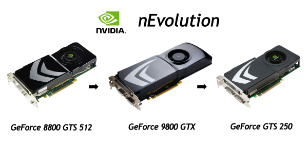 Вообще, очень интересно, чем занимаются в Nvidia отделы по проектированию чипов. По сути, уже почти три года мы не видели ничего по-настоящему нового, только небольшие улучшения (ну хорошо, в GT200 изменений было довольно много, но это всё равно лишь улучшенная архитектура G8x), а ещё чаще — обновления в виде изменённых частот, дизайна и названия.