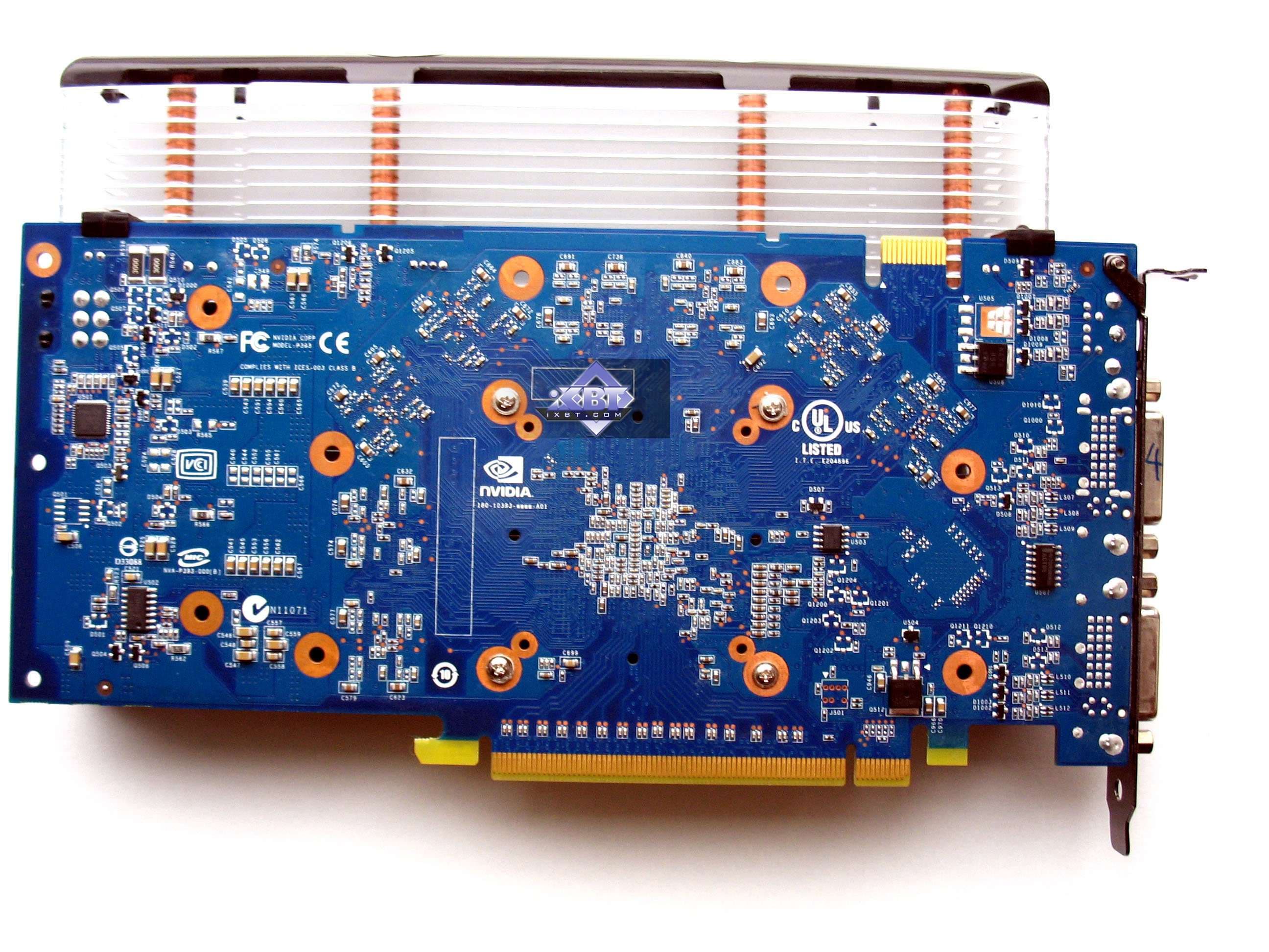 Продукт от ECS выполнен в точном соответствии с референсом, однако, это все же плата собственного производства компании. Как и карта от MSI, которая к тому же, еще и имеет свой дизайн, предусматривающий установку дополнительной памяти на обороте карты (чтобы оснастить ее объемом в 512 мегабайт).