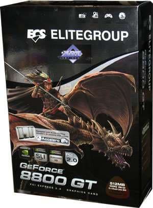 Такие идеи. А мы сегодня изучим, на наш взгляд, самый интересный 8800 GT, что появится на рынке, продукт компании ECS/Elitegroup. Мало того, что он оснащен пассивной системой охлаждения, то есть вентиляторы могут на нее устанавливаться по желанию владельца карты, опционально. Так еще и частоты повышены весьма сильно.