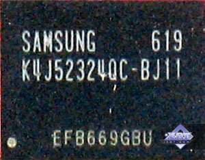 | Kарта имеет 256 МБ памяти GDDR3 SDRAM, размещенной в 4-х микросхемах на лицевой стороне PCB. Микросхемы памяти Samsung (GDDR3). Время выборки у микросхем памяти 1,1 ns, что соответствует частоте работы 900 (1800) МГц. | ![]() |
