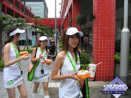 Вероятно потому, что умы в Nvidia точно также постоянно заняты завтраками обедами и ужинами, как и их же девочки на коллаже. А подумать и сделать ранее правильное решение среди более 1500 голов в компании — не дано. Как осенью пользователи путались в этих 8800 GTS, не особо понимая, почему карта с 512 мегабайтами существеннее быстрее карты с 640 мегабайтами. И почему Nvidia, радикально сменив шину, объем памяти и ядро, не подумала поменять радикально и название. Когда как потом спохватилась, и середняк с 64-ми процессорами получил уже название 9600 GT.