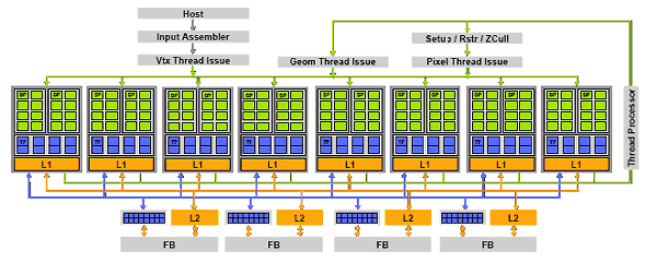 Эти материалы достаточно точно спрогнозировали текущую ситуацию с архитектурами видеочипов, оправдались многие предположения о будущих решениях. А подробную информацию об унифицированной архитектуре Nvidia G8x/G9x на примере предыдущих чипов можно найти в следующих статьях: