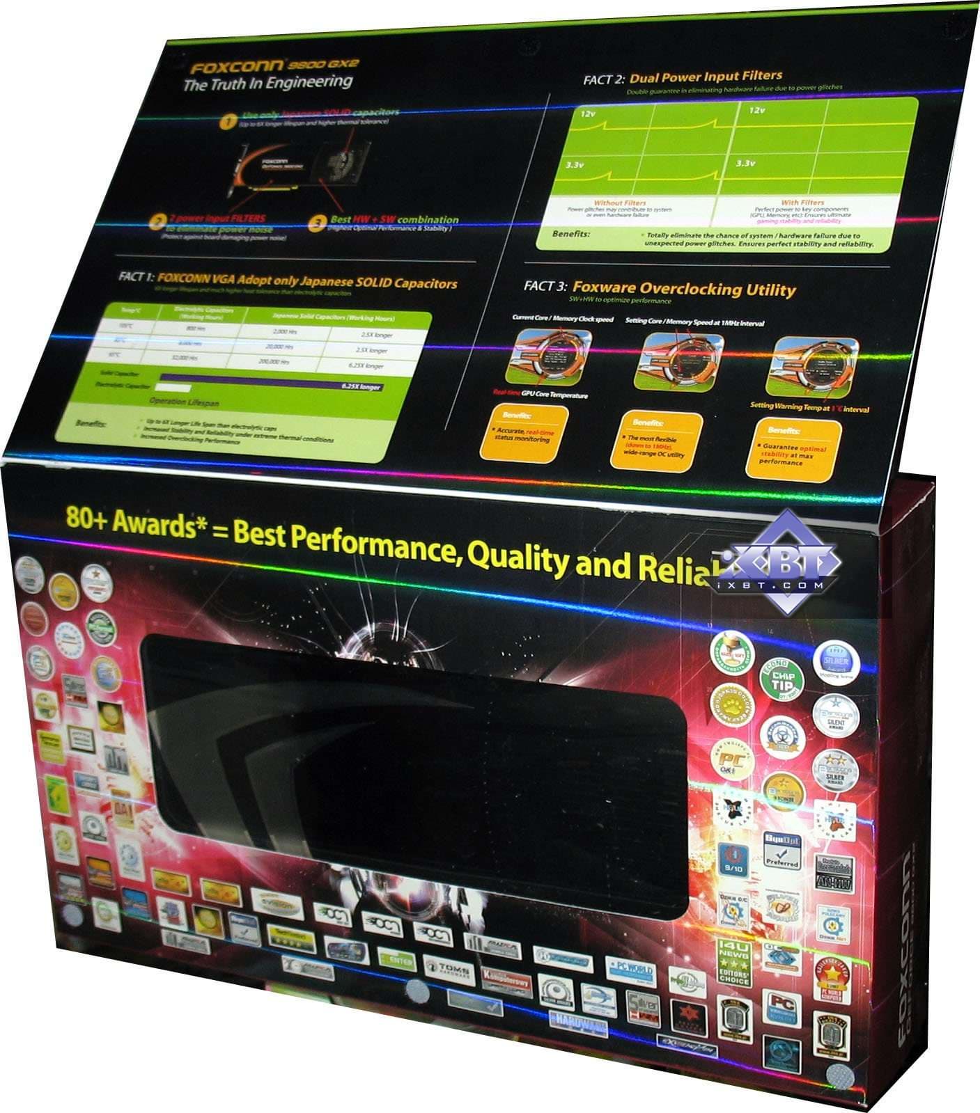 Сегодня наш материал покажется кому-то скучным, ведь мы покажем читателям очередные инкарнации референс-карт, просто упакованных в коробки от производителя под названием Foxconn. Впрочем, стоит заметить, что производственные мощности именно этой компании задействованы в выпуске референс-карт от Nvidia. Поэтому теоретически можно сказать, что эти карты для Foxconn — родные. Но это лишь теоретически, поскольку за производственным процессом тщательно следит Nvidia, и весь контроль осуществляется силами специалистов этой компании. Лишь поточные линии, которые используются для производства, принадлежат Foxconn.