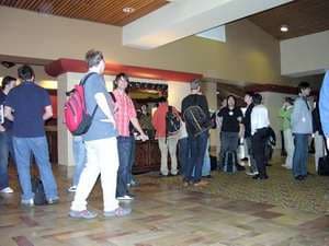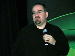 Лёгкий завтрак, и все уже внимательно слушают первого выступающего, представителя компании Microsoft. Бойкий мужчина с трудно выговариваемым именем Кевин Юнангст (Kevin Unangst) решил продемонстрировать эволюцию компьютерных игр для ОС Windows на примере известных симуляторов-леталок «Microsoft Flight Simulator».