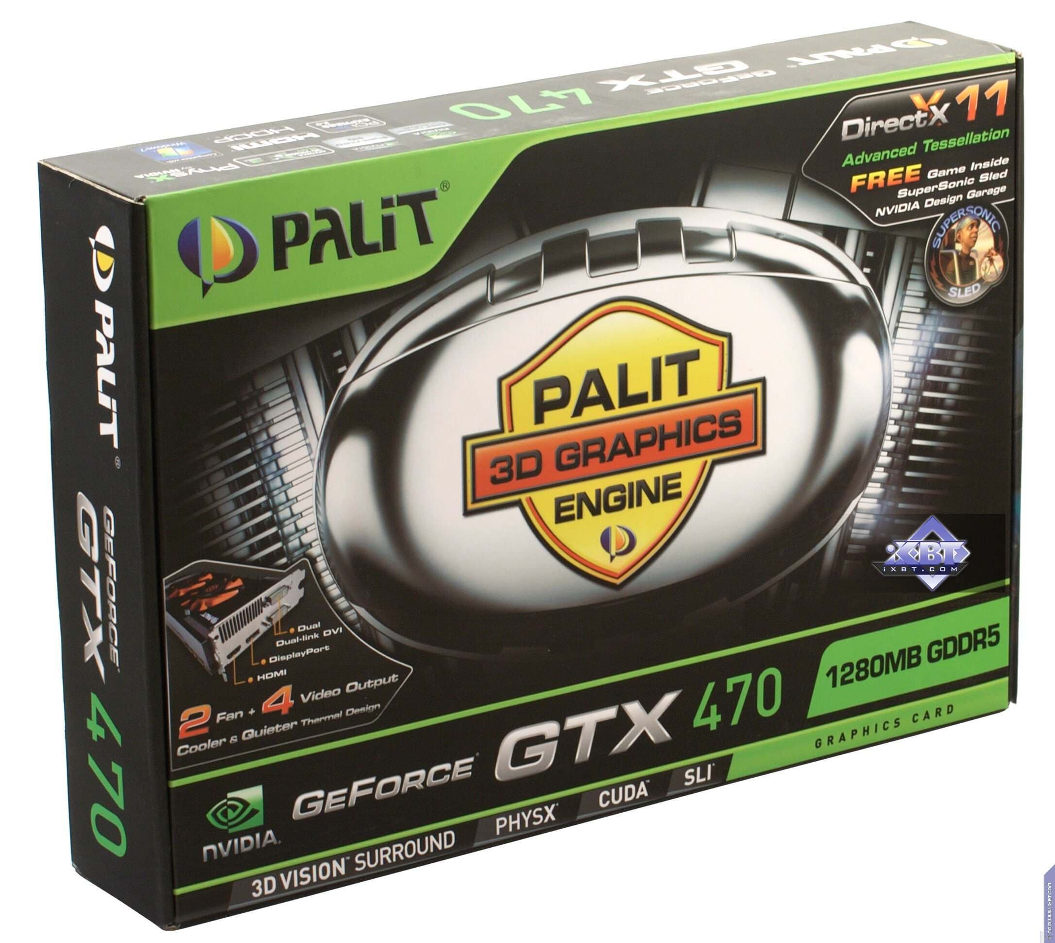 - Palit Geforce GTX470 1280 МБ 320-битной GDDR5 PCI-E