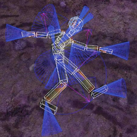 Физическая модель Sled состоит из 200 твёрдых тел и 200 осевых шарниров. И вся физика этих объектов при помощи PhysX рассчитывается на CPU. И ragdoll модель пилота также считается на PhysX. Из всех анимаций в демке заранее просчитанной является только лицевая анимация пилота. Всё остальное рассчитывается в реальном времени.