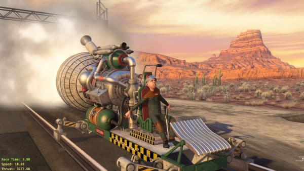 Из графических технологий, применённых в Supersonic Sled, не связанных с физическими эффектами, можно отметить качественную постобработку — размытие в движении и применение тесселяции для поверхности земли. Причём, как вы можете видеть на скриншоте выше, тесселяция используется адаптивная.