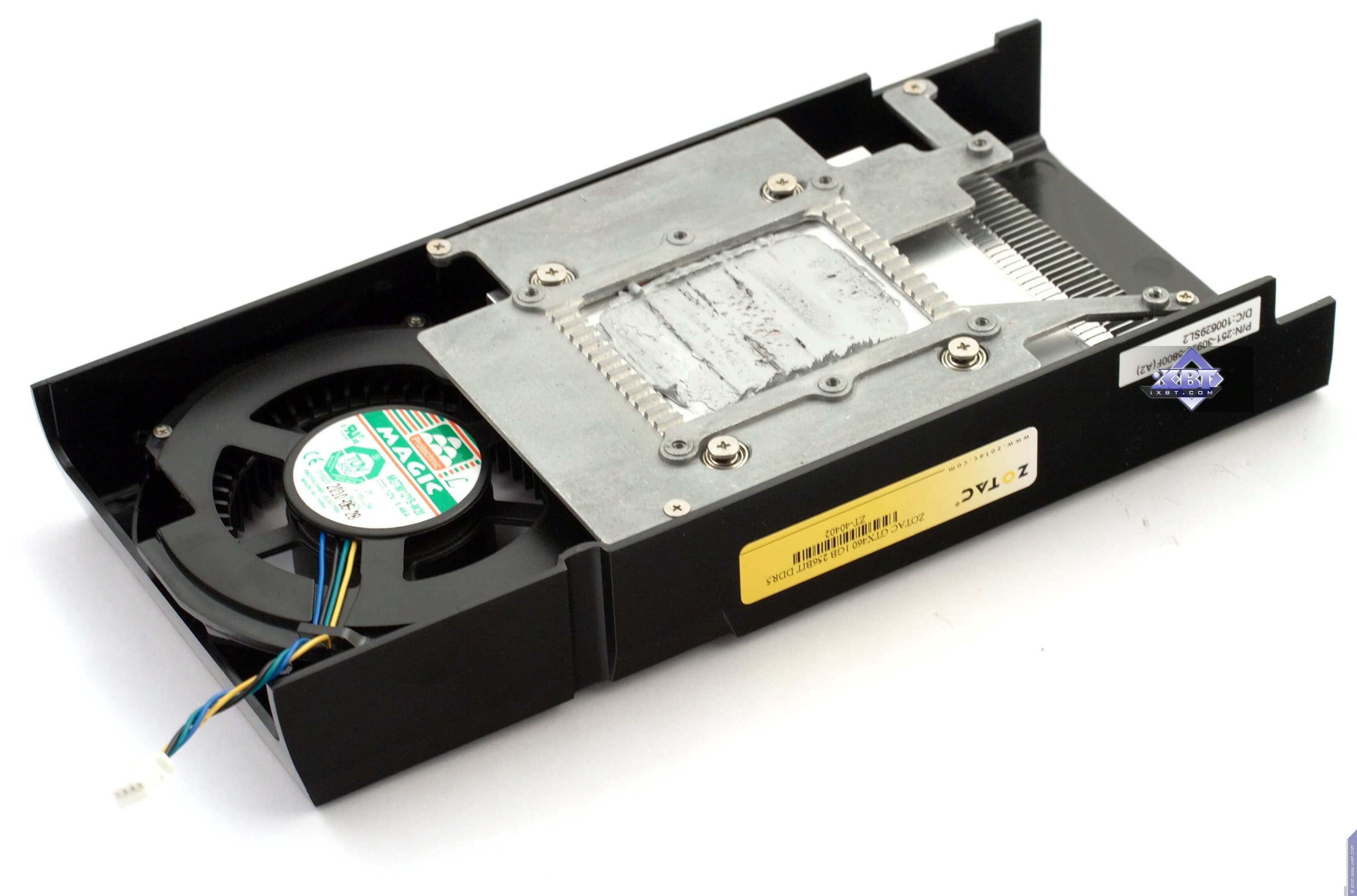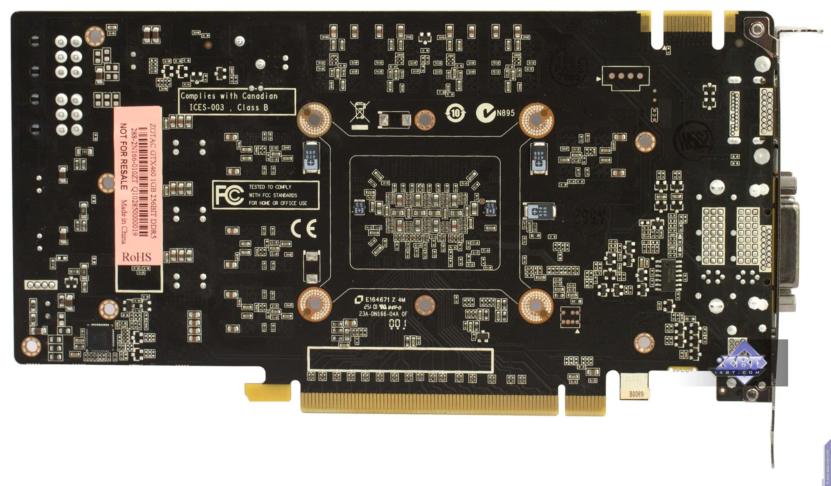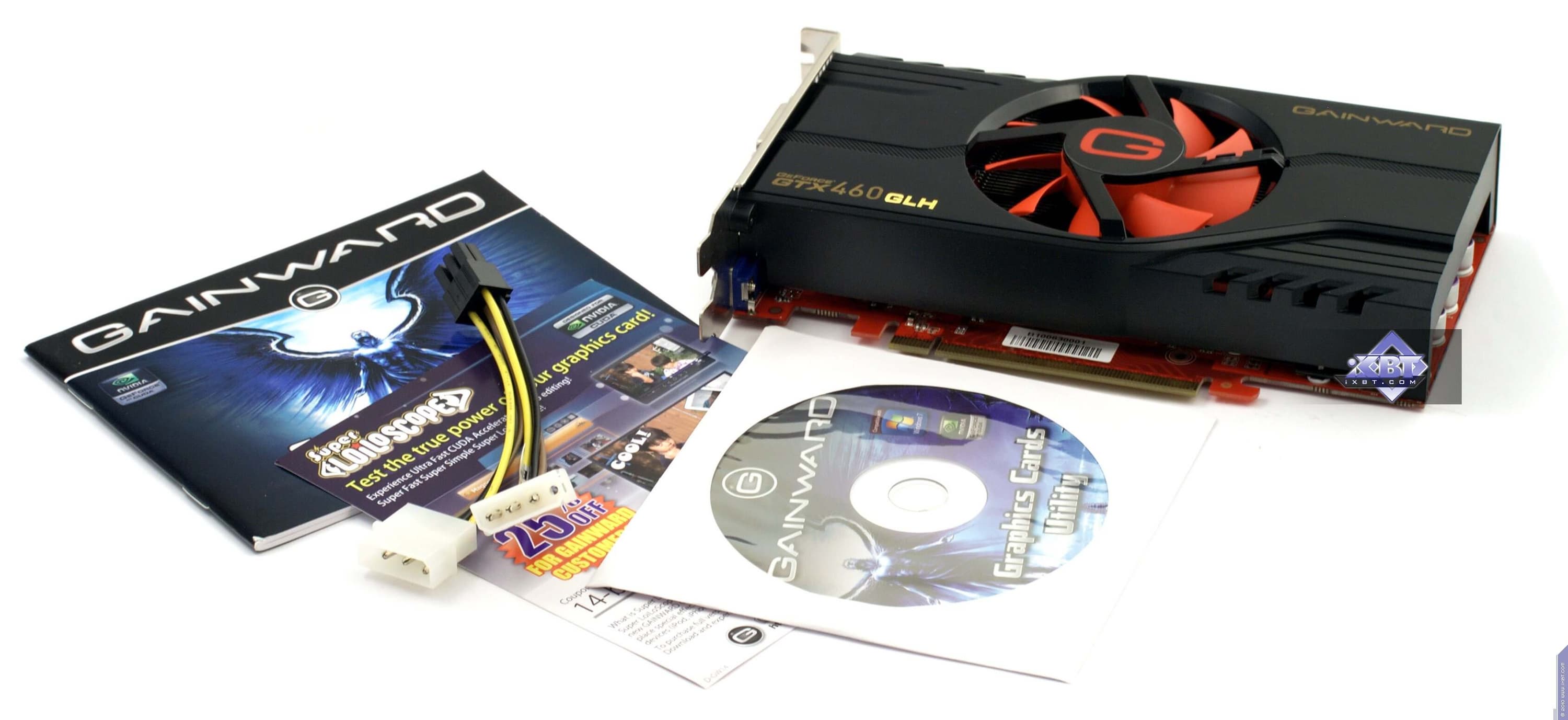 Zotac Geforce GTX460 1024 МБ 256 бит PCI-E — по сути референс-карта с 256-битной шиной и объемом памяти 1 ГБ. К сожалению, по нагреву (максимальная температура ядра — 82 °С) результаы малоприятные, впрочем, нагрев все равно не критичный. Стоит отметить хороший комплект поставки, да и упаковку.