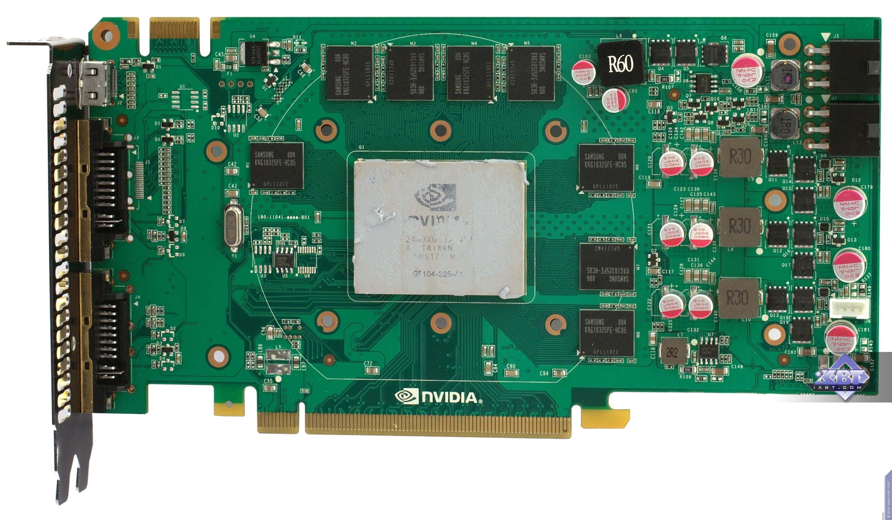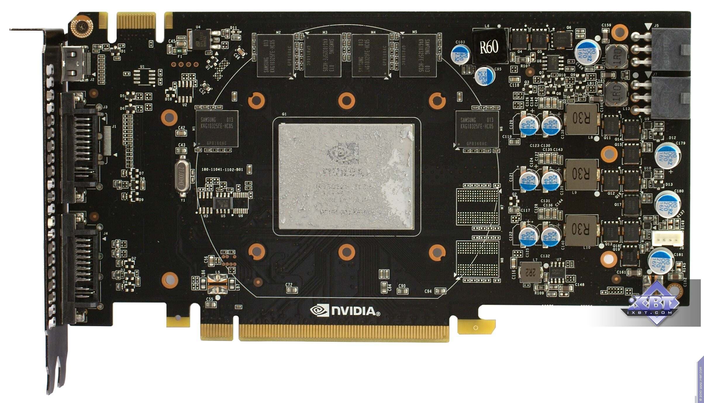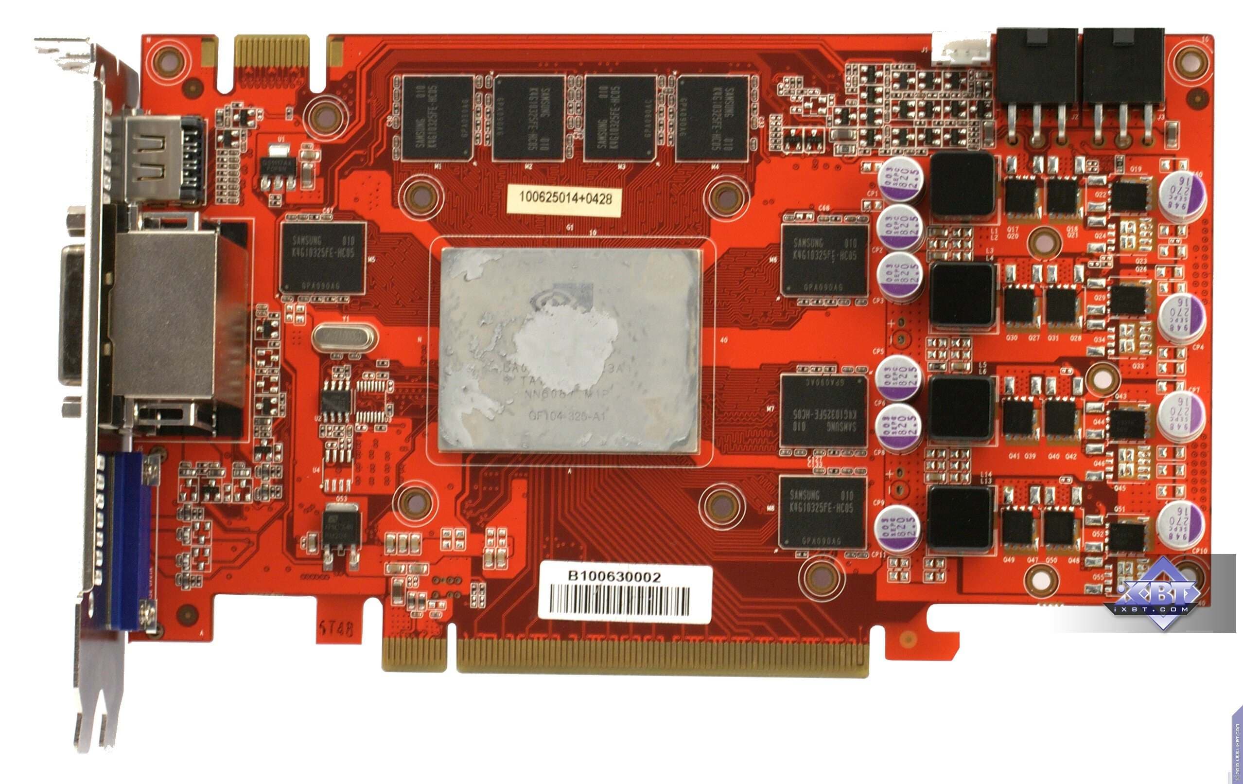 | Карта имеет 768 МБ памяти GDDR5 SDRAM, размещенной в шести микросхемах на лицевой сторонe PCB. Микросхемы памяти Samsung (GDDR5). Микросхемы расчитаны на максимальную частоту работы в 1250 (5000) МГц. | ![]() |