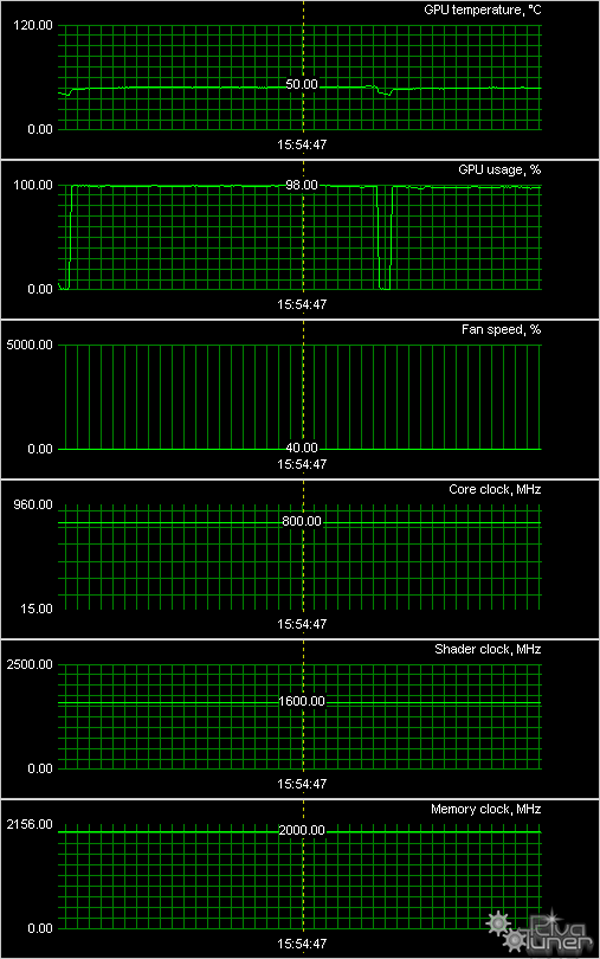Мы провели исследование температурного режима с помощью утилиты EVGA (автор А. Николайчук AKA Unwinder) и получили следующие результаты: