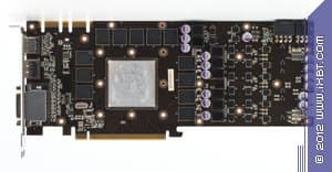 Также видим, что карта имеет одно гнездо HDMI (ускорители такого рода поддерживают полноценную передачу видео и звука на HDMI-приемник, поскольку обладают собственным звуковым кодеком) и одно DP (к которому можно, теоретически, подключить до трех мониторов, но в сумме вывод может быть только на три приемника).