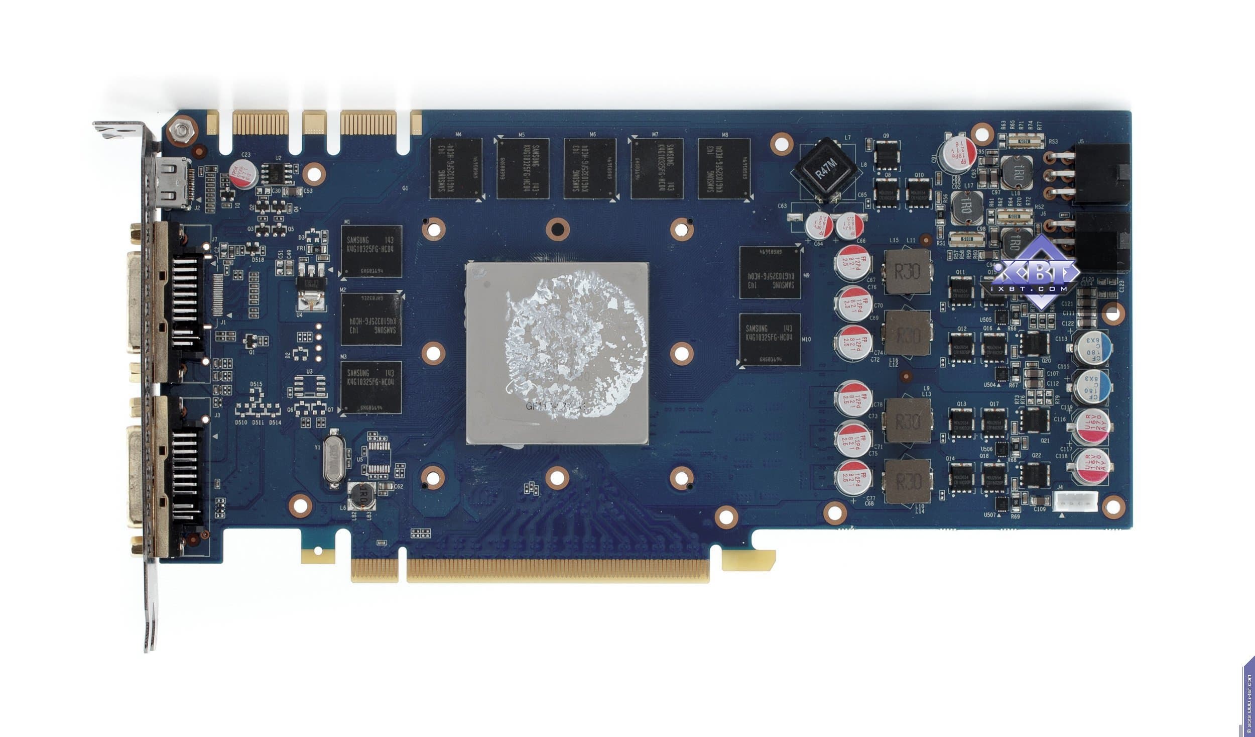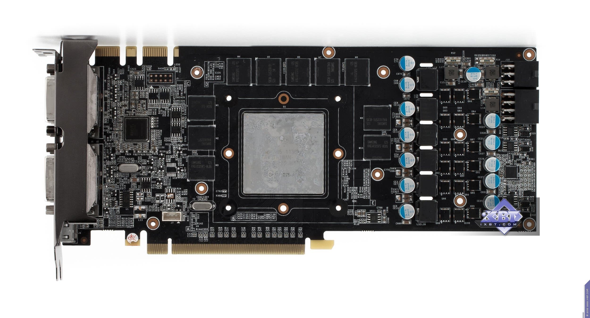 Карта имеет 1280 МБ памяти GDDR5 SDRAM, размещенной в 10 микросхемах на лицевой сторонe PCB. Микросхемы памяти Samsung (GDDR5). Микросхемы расчитаны на максимальную частоту работы в 1250 (5000) МГц. | ![]() |