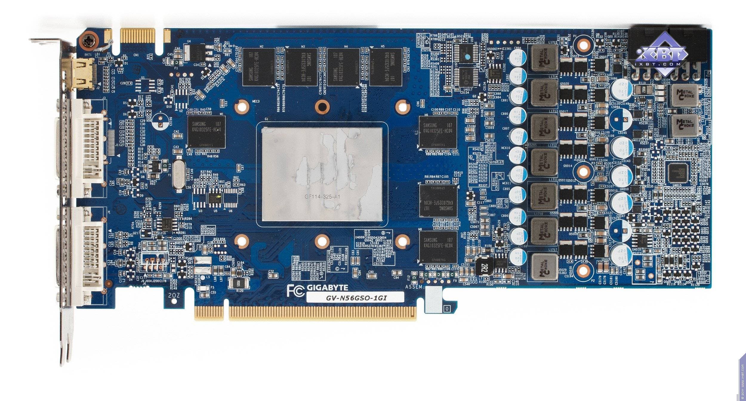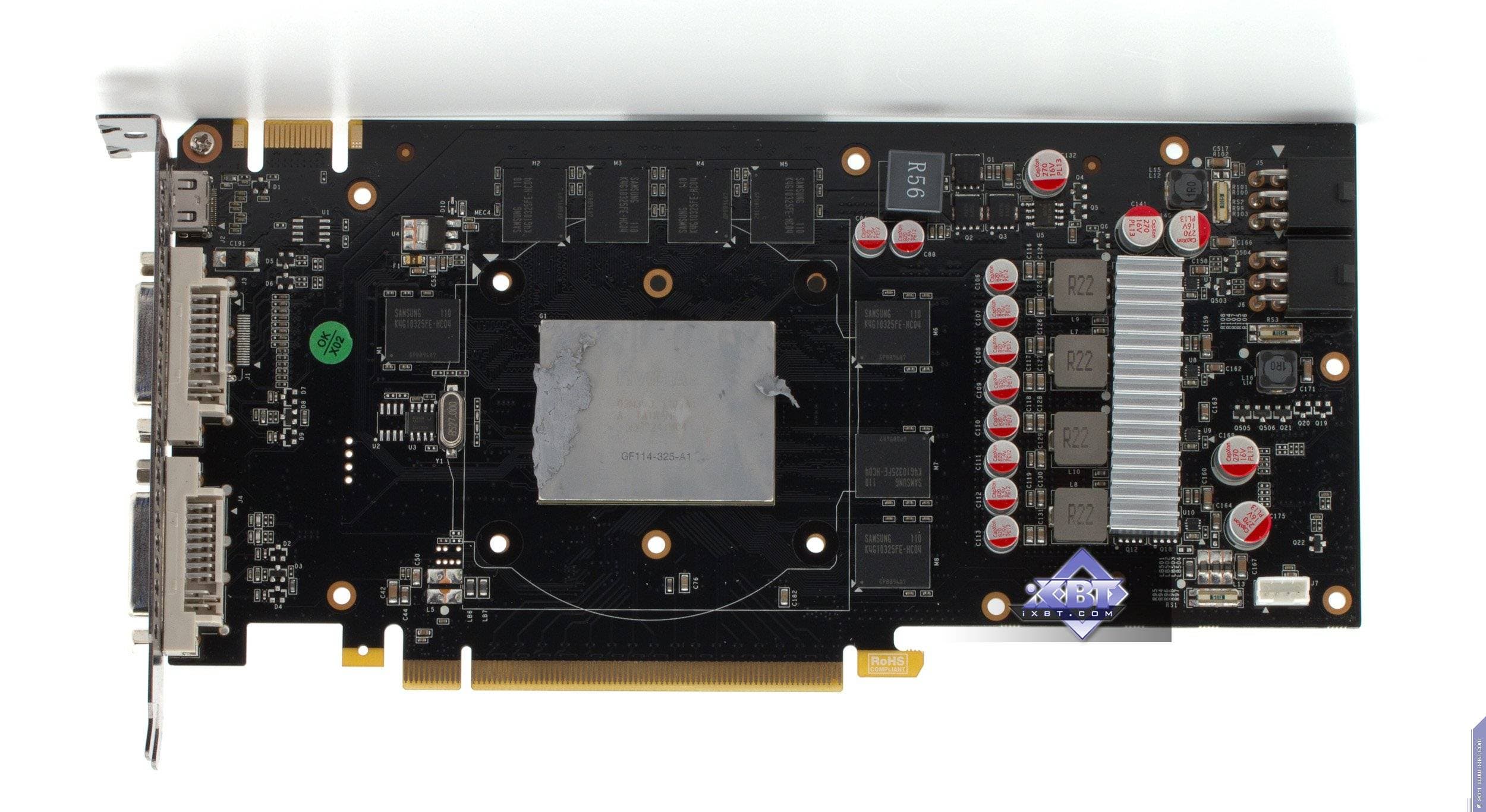 Каждая карта имеет 1024 МБ памяти GDDR5 SDRAM, размещенной в восьми микросхемах на лицевой сторонe PCB. Микросхемы памяти Samsung (GDDR5). Микросхемы расчитаны на максимальную частоту работы в 1250 (5000) МГц. | ![]() |