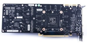 Ускоритель имеет следующий набор гнезд вывода: 2 DVI (один из которых Single-Link и совместим с выводом на VGA) и по одному DisplayPort и HDMI (второе гнездо DVI обладает возможностью через адаптер передавать сигнал на HDMI, поэтому суммарно можно подключить 2 приемника с HDMI). Напомним, что ускорители Nvidia достаточно давно обладают собственными звуковыми кодеками, поэтому передача на HDMI-монитор будет полноценной, со звуком. Также уместно напомнить, что возможность одновременного вывода картинки максимально на 4 монитора (каждый до разрешения Full HD), реализована и тут. Но если в случае GTX 780/Titan она наиболее полно востребована, учитывая мощность и возможности тех ускорителей, то для GTX 770 в некоторых играх придется снижать настройки качества, чтобы получить приемлемую играбельность в таком высочайшем разрешении.