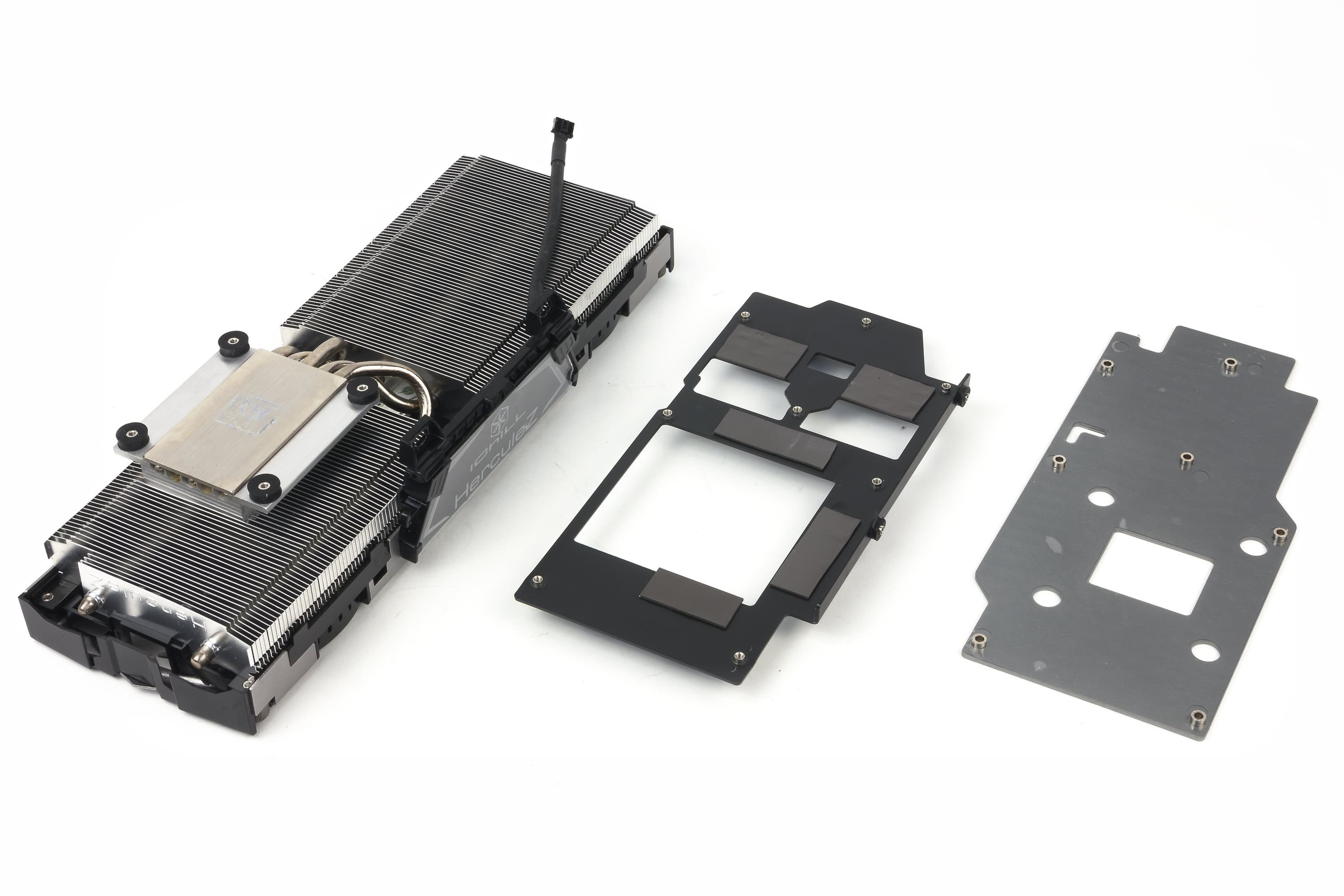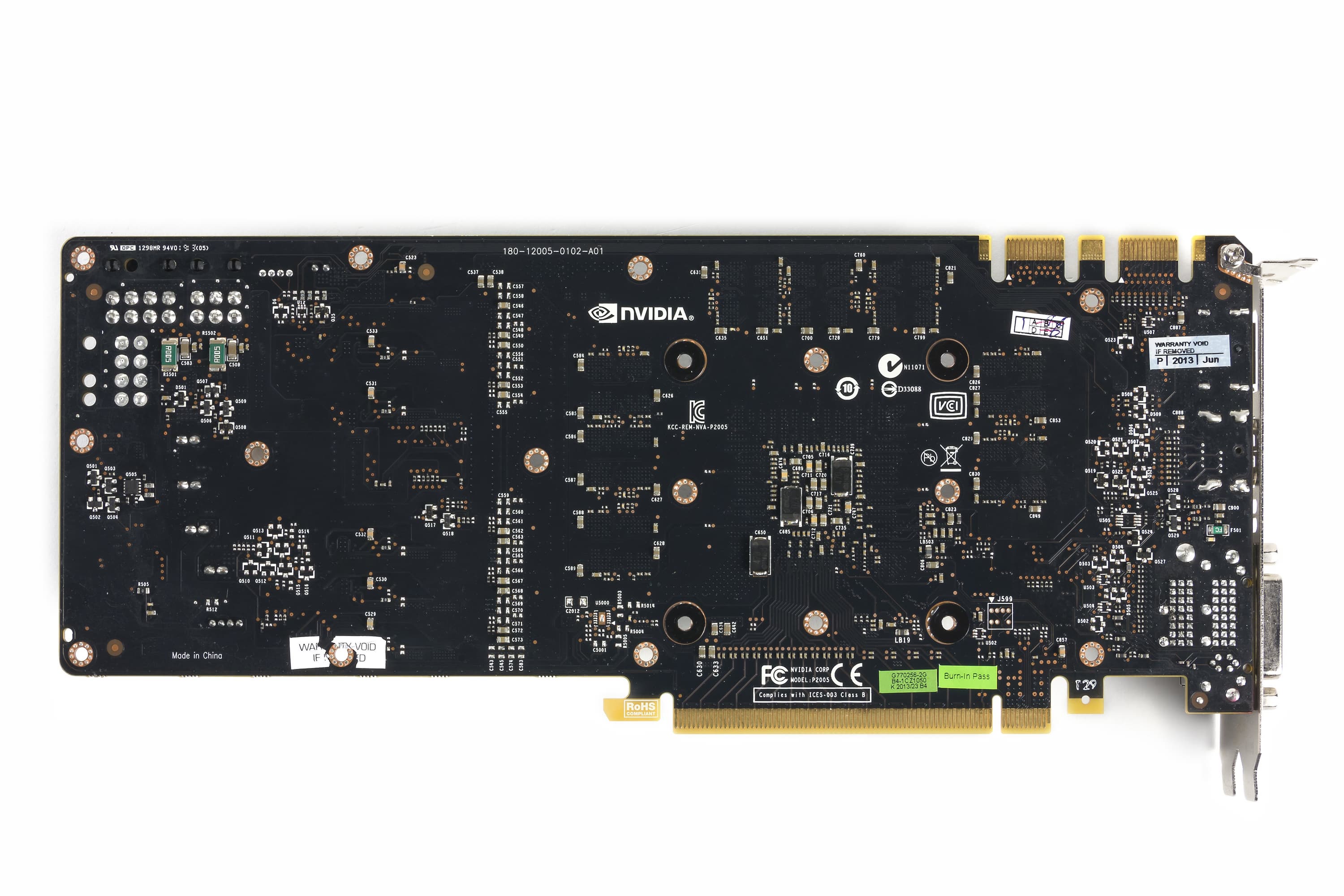 Мы видим по сути полную копию эталонного дизайна. Схема питания 6-фазная, управляемая цифровым контроллером. Все остальное схоже с ранее изученными нами разводками печатных плат для GTX 770. Следует отметить, что несмотря на то, что размеры печатной платы не выходят за рамки принятых стандартов для топовых продуктов (270×100 мм), очень громоздкая СО значительно увеличивает размеры ускорителя, который занимает 3 слота в системном блоке.