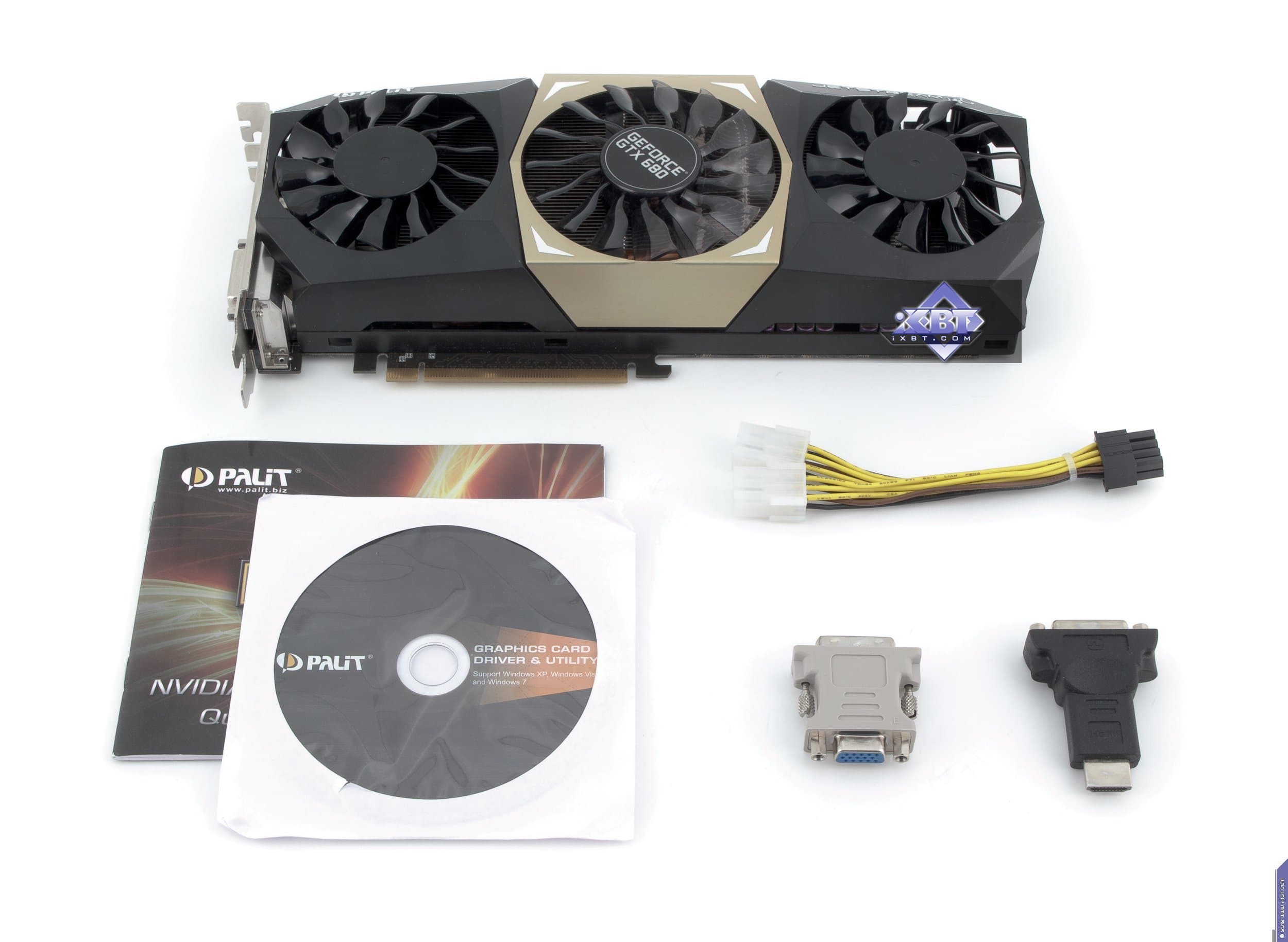 Palit Geforce GTX 680 JetStream 2048 МБ 256-битной GDDR5 PCI-E — тоже очень интересный вариант топового GTX 680, также имеющий повышенные частоты работы, плюс очень хороший комплект поставки со всеми нужными адаптерами. Небольшой минус лишь в том, что несколько шумновата СО. Впрочем, оверклокеры вполне могут быть рады такой СО (хотя разгон GTX 680 — это задача уже не столь простая, как было ранее).