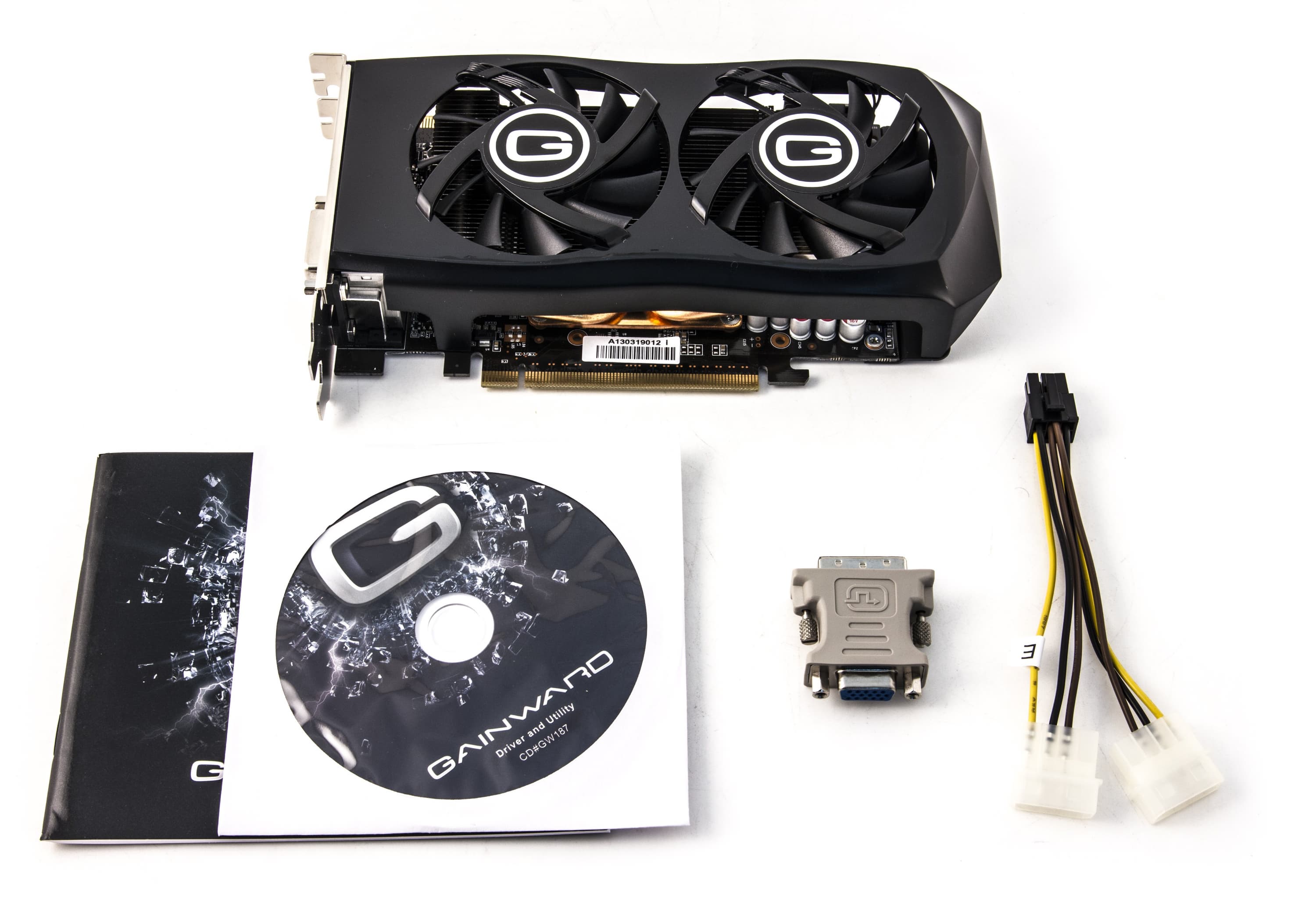Мы видим базовый комплект, плюс переходник DVI-to-VGA и разветвитель питания. | ![]() |