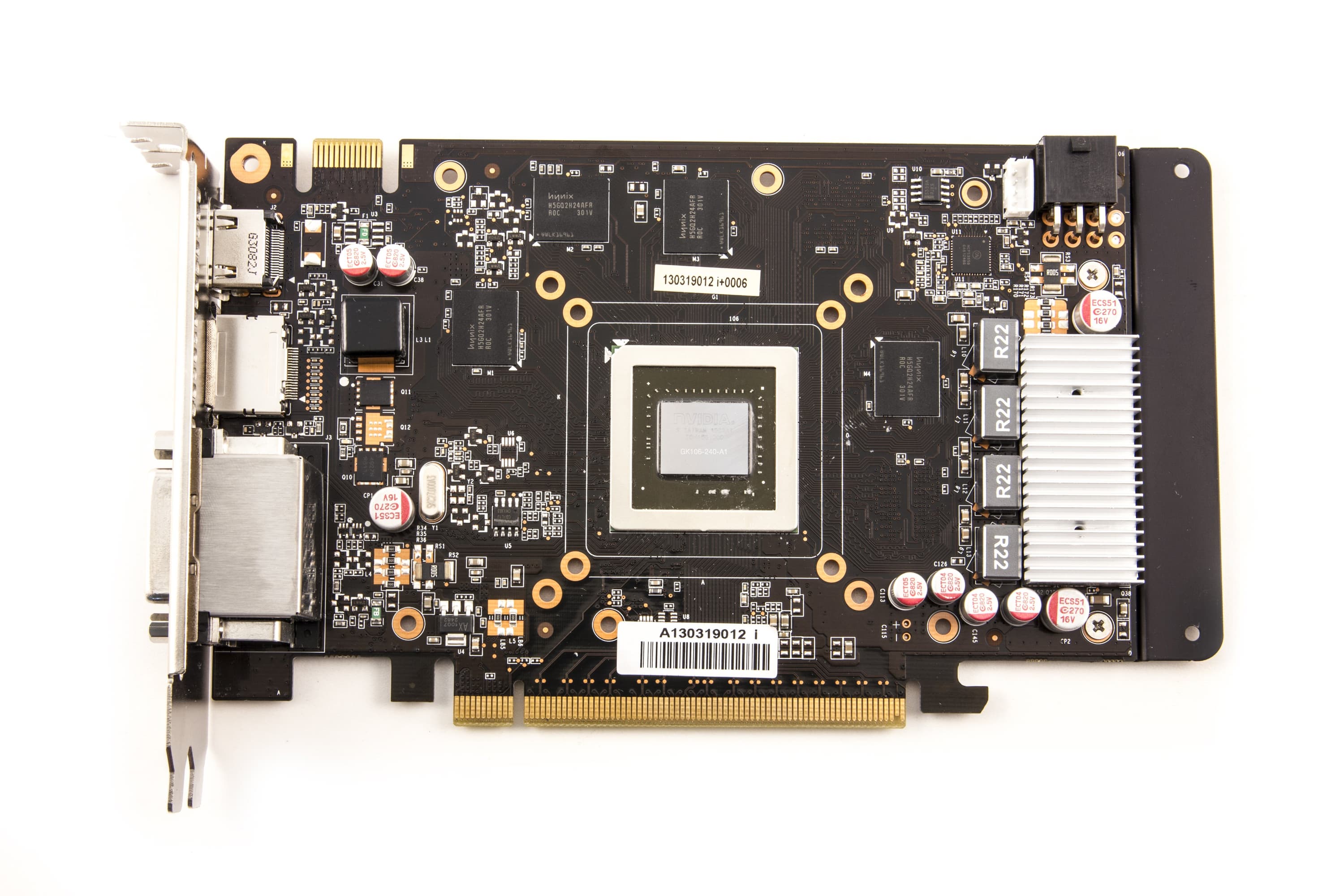 Карта имеет 2048 МБ памяти GDDR5 SDRAM, размещенной в 8 микросхемах (по 4 на каждой стороне PCB). Микросхемы памяти Hynix (GDDR5). Микросхемы рассчитаны на максимальную частоту работы в 1500 (6000) МГц. | ![]() |