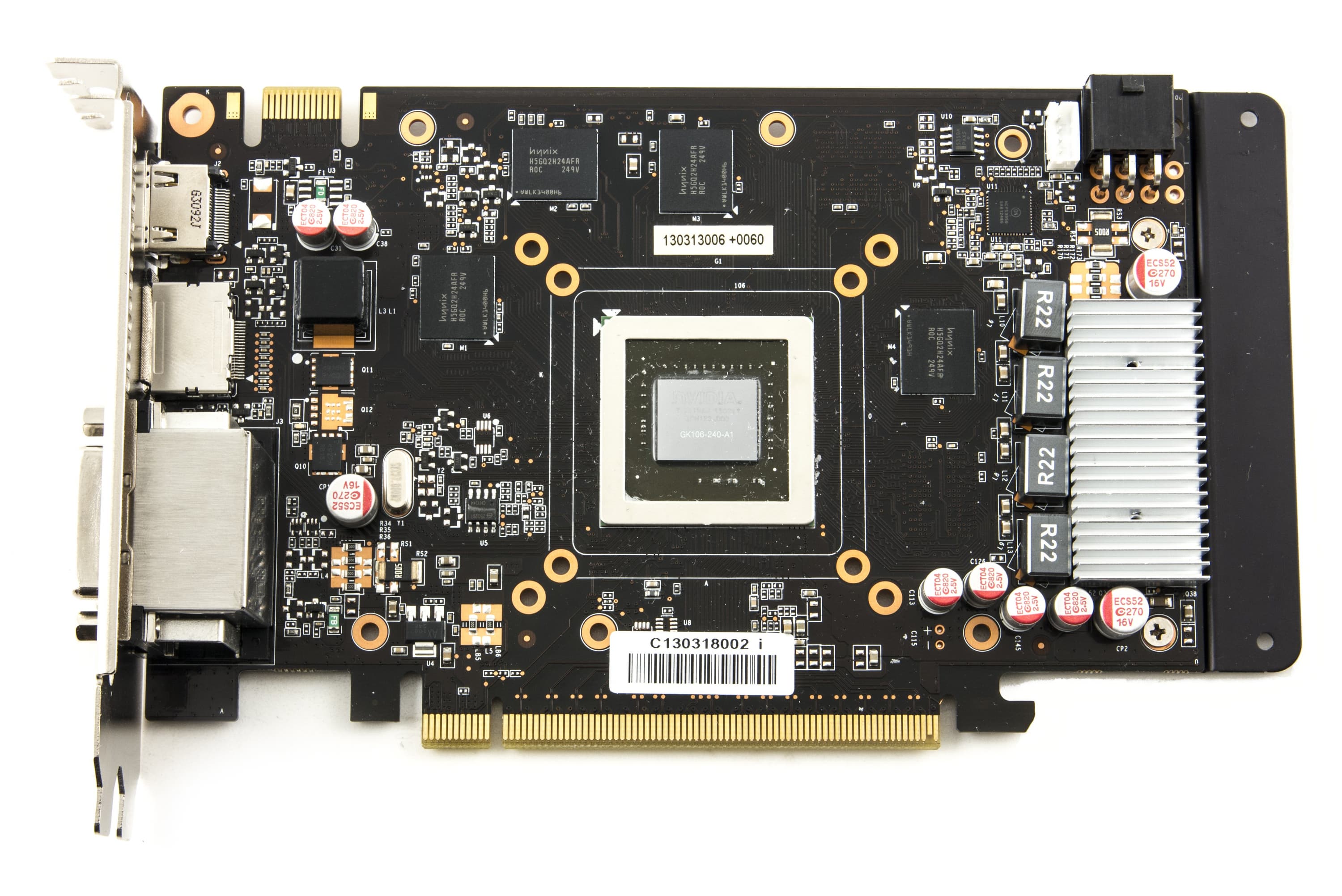 Карта имеет 2048 МБ памяти GDDR5 SDRAM, размещенной в 8 микросхемах (по 4 на каждой стороне PCB). Микросхемы памяти Hynix (GDDR5). Микросхемы рассчитаны на максимальную частоту работы в 1500 (6000) МГц. | ![]() |
