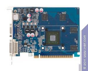 Эта карта призвана, так сказать, уважать старые аналоговые мониторы или дешевые LCD с единственным входом d-Sub (VGA-гнездо трапецевидной формы), поскольку обладает таковым гнездом, и никаких специальных адаптеров-переходников не требуется. На данной карте имеется также гнездо DVI, поэтому возможно подключить два монитора с d-Sub (во втором случае придется искать адаптер DVI-to-VGA).