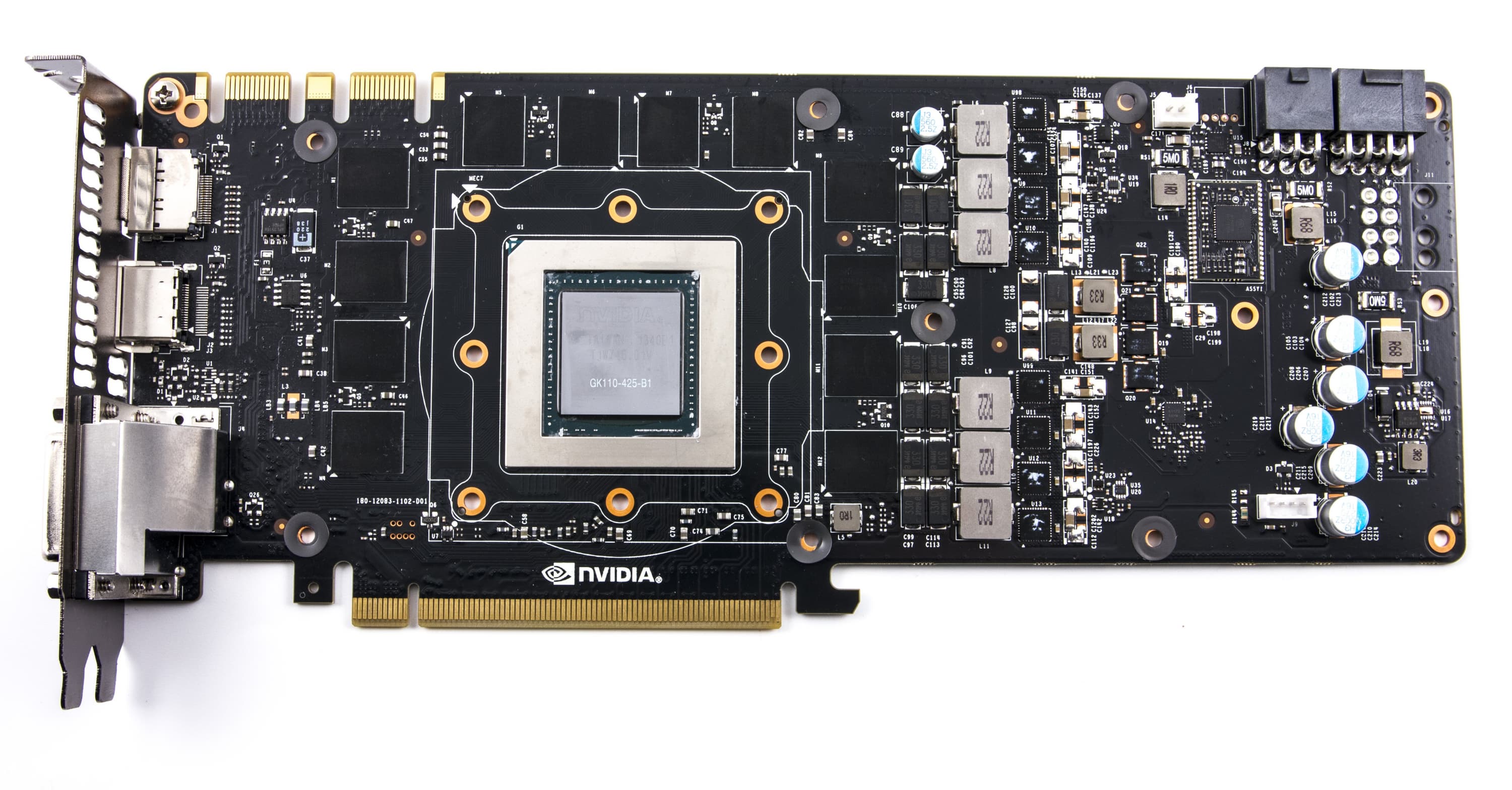 Напомним, что ускорители Nvidia обладают собственными звуковыми кодеками, поэтому передача на HDMI-монитор будет полноценной, со звуком. Также уместно напомнить, что возможность одновременного вывода картинки максимально на 4 монитора (каждый до разрешения Full HD), полученная еще серией GTX 6xx, реализована и в GK110, где она наиболее полно востребована, учитывая мощность и возможности данного ускорителя.