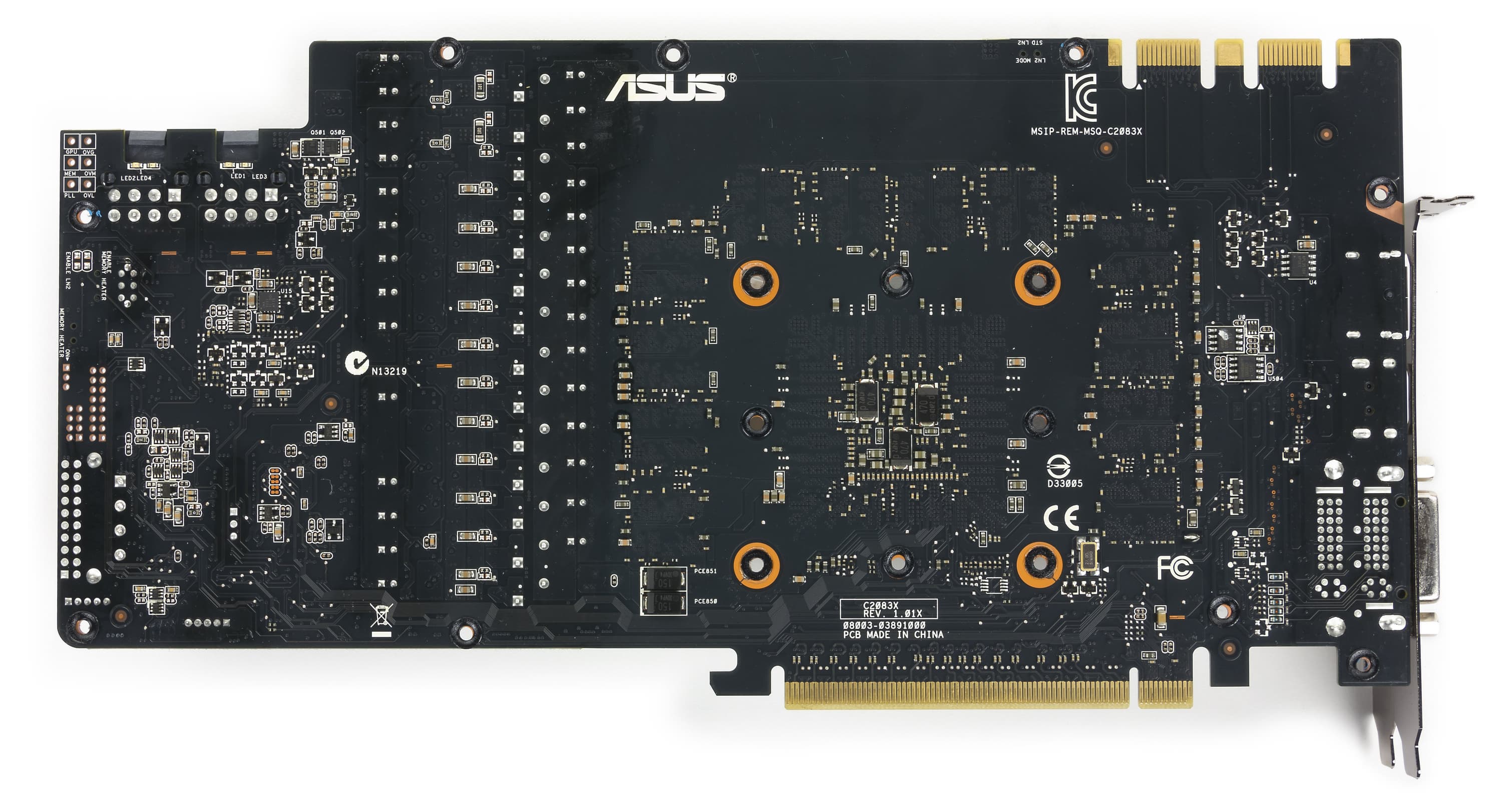 Поскольку данный продукт ориентирован прежде всего на оверклокеров, то система питания кардинально переработана. Схема питания ядра — 12-фазная, плюс 2 фазы на микросхемы памяти. Разумеется, все это управляется цифровым контроллером, и в итоге обеспечивается очень гибкое регулирование напряжений на ядре с ювелирной точностью. Полный доступ к регулировке работы ускорителя осуществляется с помощью утилиты GPU Tweak (про нее мы уже рассказывали), которая поставляется с картой, а свежую версию можно скачать с сайта производителя.