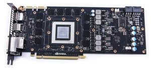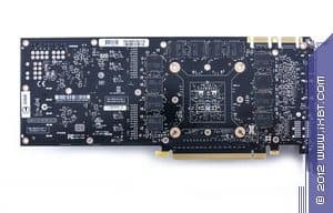 Собственно, перед нами копия ранее изученного референс-ускорителя, а иного и быть не может. Карта весьма сложна, однако Nvidia удалось удержать размеры карты в разумных пределах, так что она не выходит за рамки принятых стандартов для топовых ускорителей: 270×100 мм. Да и занимает она в корпусе традиционные 2 слота. Система питания имеет 6 фаз для ядра и 2 фазы для микросхем памяти. Управляется БП цифровым контроллером NCP 4206 компании On Semiconductor.