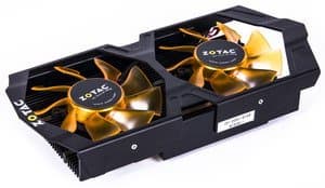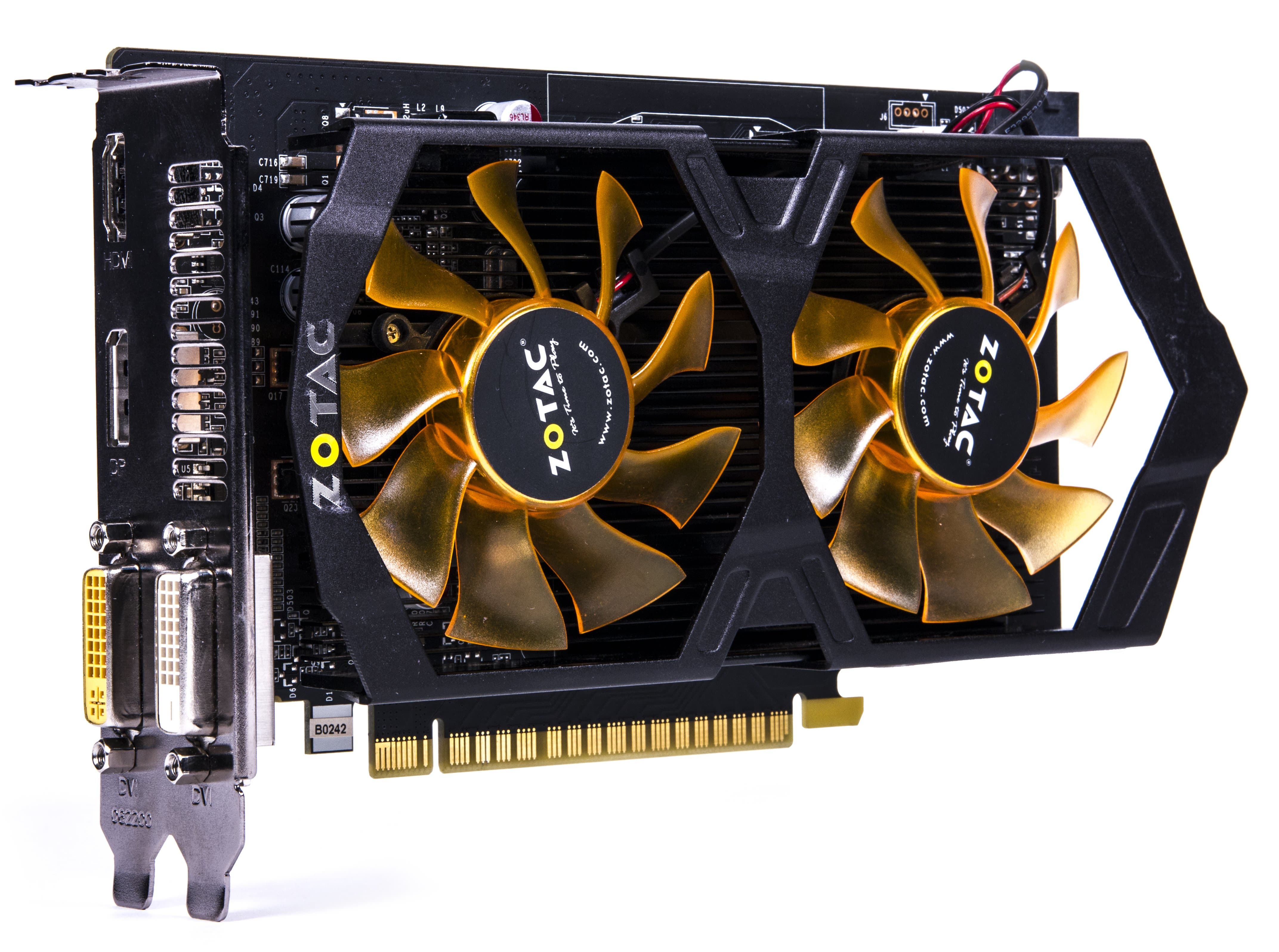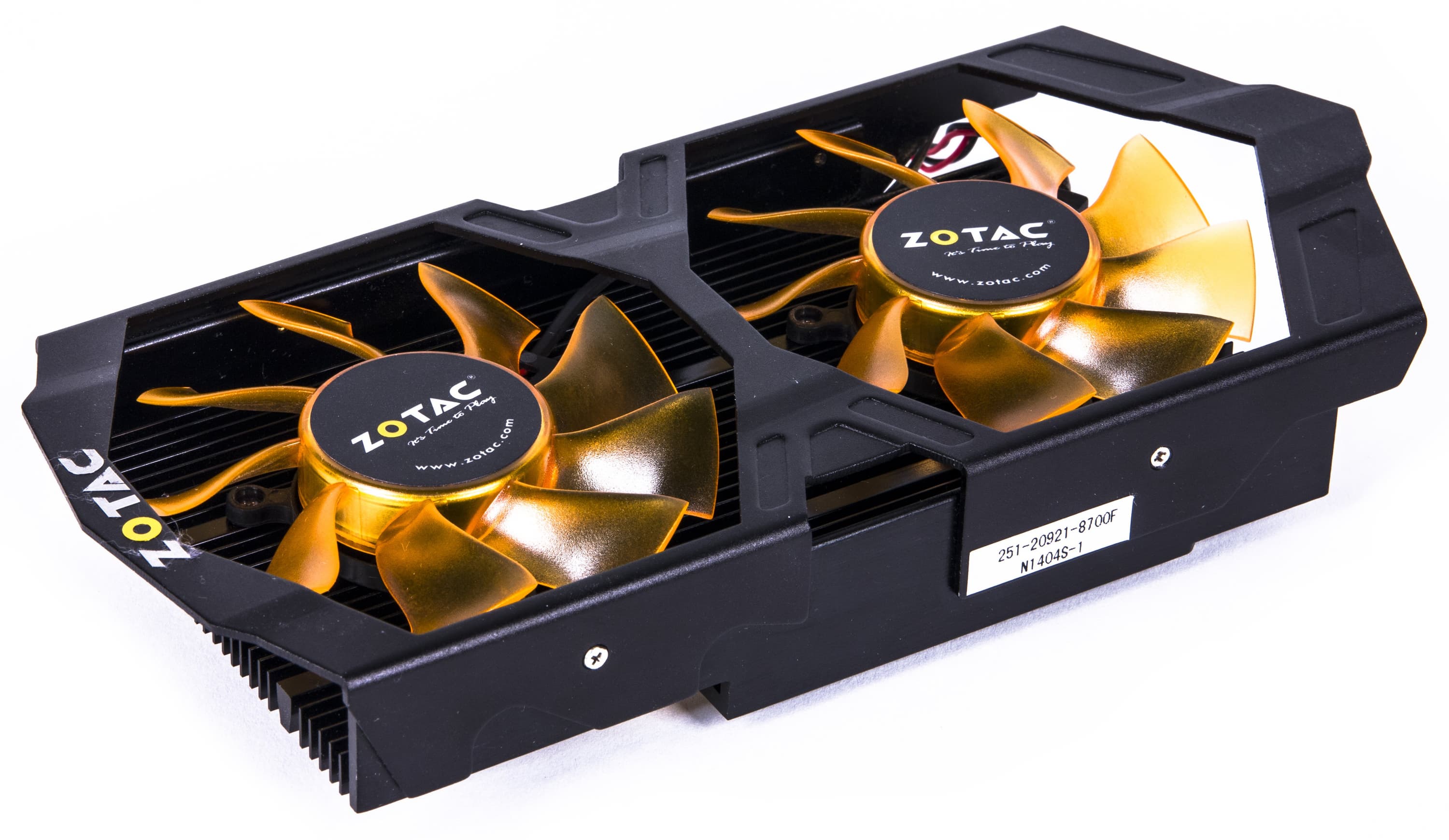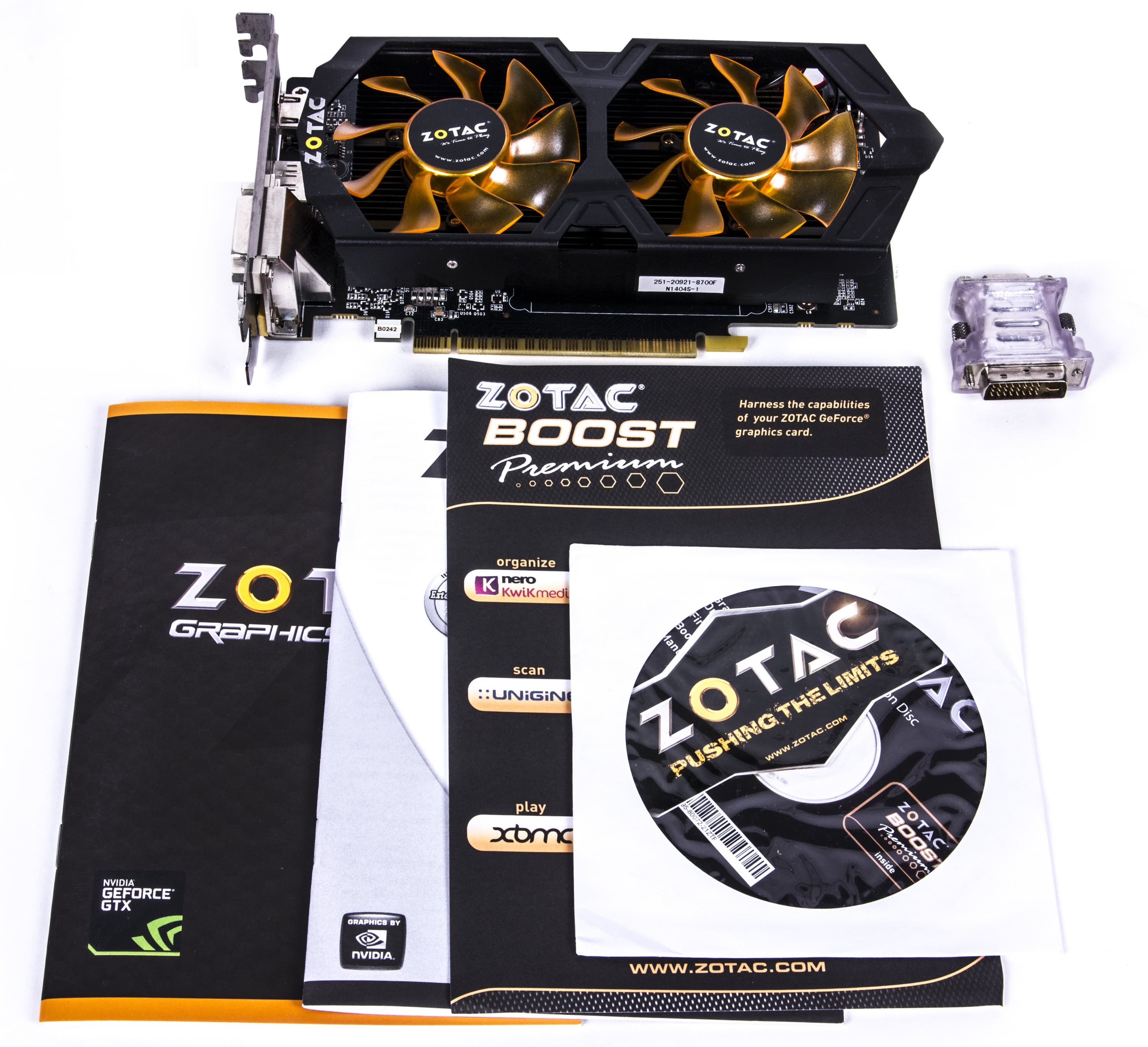 Рассматриваемый ускоритель Zotac основан на эталонном дизайне, однако только в плане конфигурации посадочных гнезд под микросхемы памяти и ядро. В остальном имеются сильные отличия: карта Zotac более длинная, а также применена более популярная схема комплектации двумя DVI-разъемами, плюс DP и HDMI. Один разъем DVI (Single-Link) совместим с выводом на мониторы с поддержкой d-Sub (через переходник), второй (Dual-Link) совместим с выводом на мониторы с поддержкой HDMI.