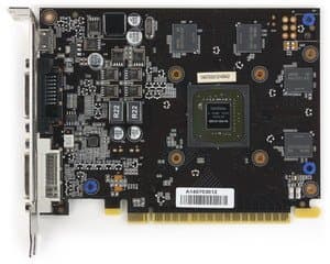 Palit Geforce GTX 750 Ti KalmX 2048 МБ 128-битной GDDR5 PCI-E — отличный вариант среднебюджетного ускорителя для тех, кому очень важна тишина. Этот продукт весьма симпатичен для разного рода баребонов с пониженным уровнем шума. Нагрев у данного акселератора не столь велик, поэтому он подойдет для всех видов корпусов. К сожалению, в комплекте поставки нет переходника с Mini-HDMI, так что владельцам устройств отображения с HDMI-входом придется приобрести такой адаптер или соответствующий кабель самостоятельно. По соотношению цены и возможностей на момент написания материала в ценовой группе 120—160 долларов Radeon R7 265 являлся более предпочтительным вариантом.