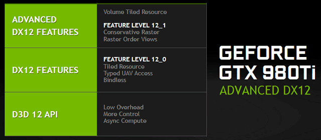 Самый важный вопрос — когда мы увидим все это великолепие в играх? По данным компании Microsoft, около 100 игровых разработчиков уже занимаются разработкой 3D-приложений, использующих возможности новой версии их графического API, и мы уже видели несколько соответствующих демонстраций на CryENGINE, Unity и Unreal Engine, запущенных на ПК с видеокартами Geforce на различных мероприятиях. Главное, что архитектура Maxwell от Nvidia обладает полноценной поддержкой всех возможностей текущей версии DirectX 12 уровня Feature Level 12.1 — самого совершенного на данный момент.